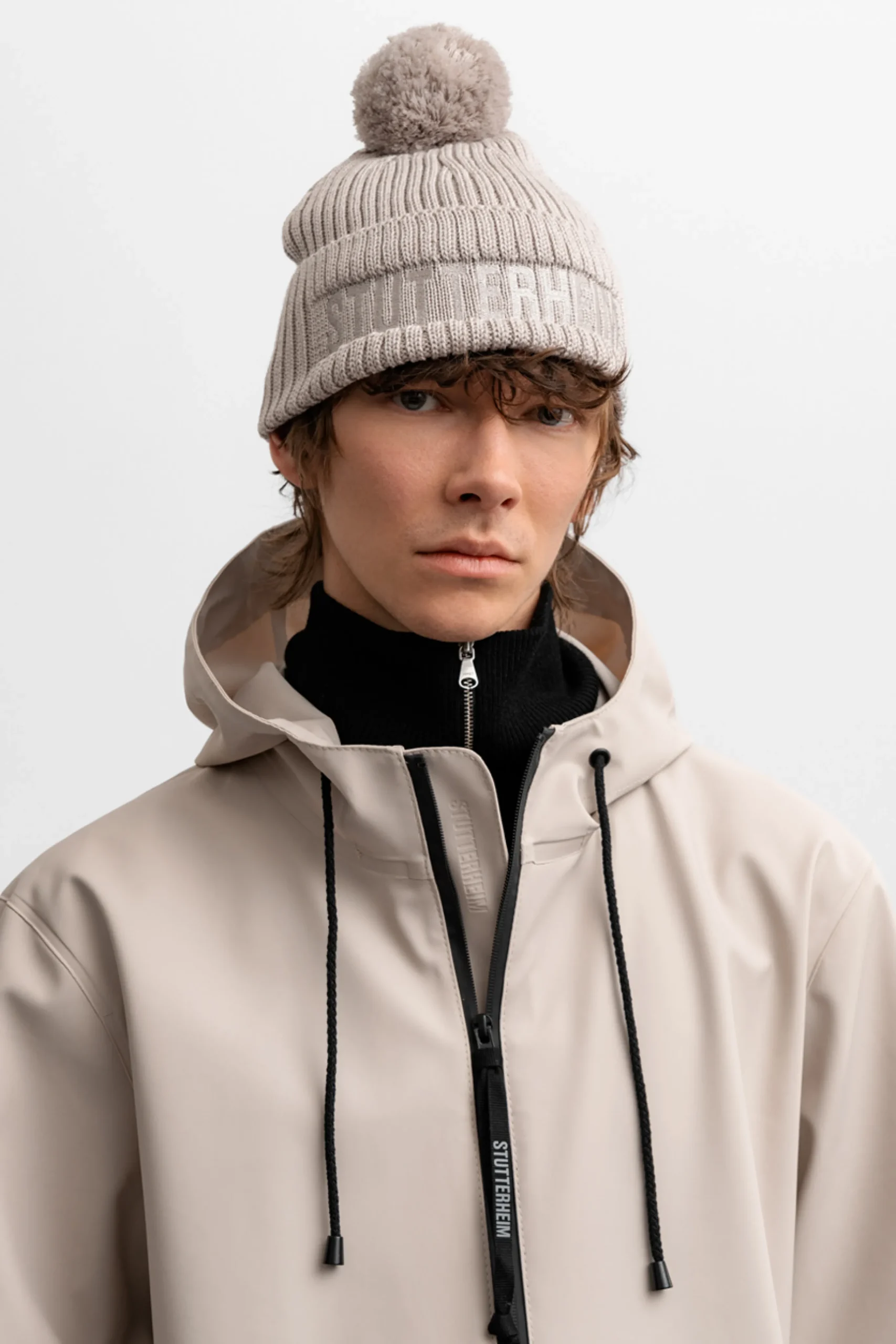 The April Beanie is the perfect autumn and winter accessory to top off a waterproof STUTTERHEIM outfit. This rib-knitted hat is a classic unisex style, with a large pompom on top and a bold STUTTERHEIM logo embroidered on the front in a matching colour.