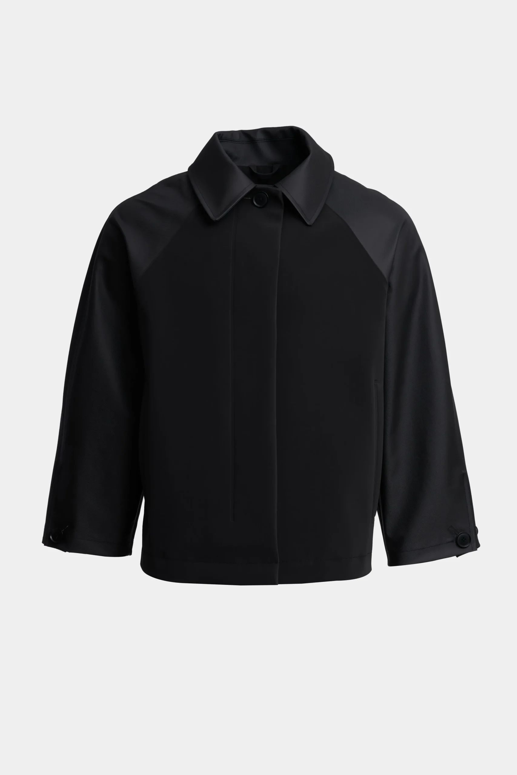 Bandhagen is a varsity-style rain jacket for women in sturdy waterproof fabric. This two-tone, two-texture design is constructed with double-welded seams, making it completely waterproof. The body of the garment is made up of a fabric with a matte texture, while the sleeves have a finish reminiscent of canvas fabric. The tapered sleeves and relaxed fit add an elegant yet causal look to the style – making it the most stylish raincoat imaginable.