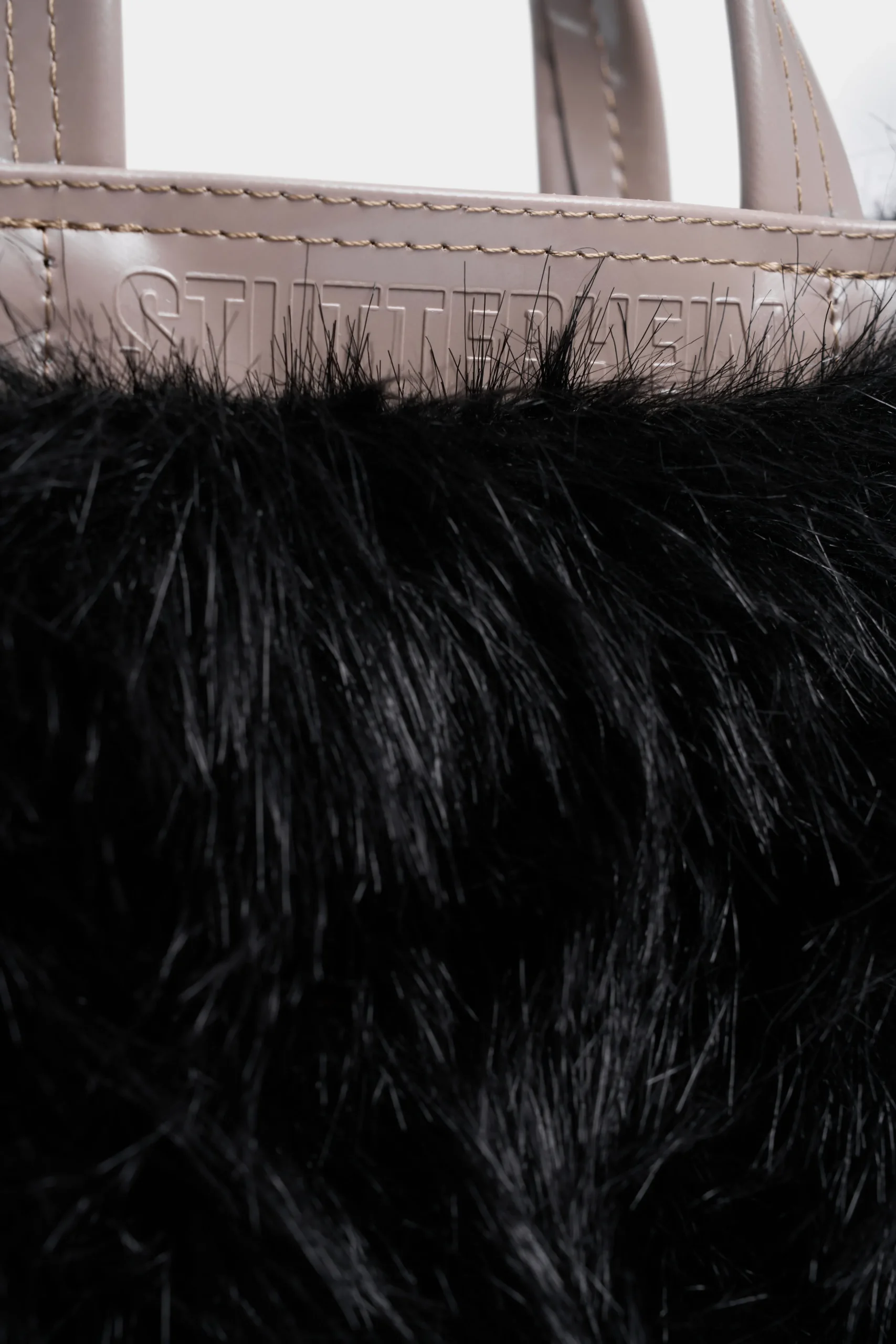 Biblio Faux is a furry handbag covered in long-haired black faux fur. The shape is based on our best-selling style Bibli…