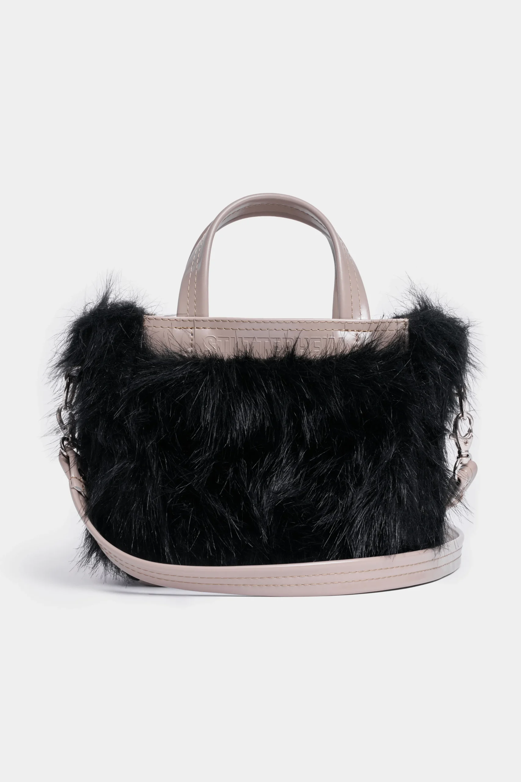 Biblio Faux is a furry handbag covered in long-haired black faux fur. The shape is based on our best-selling style Biblio – this update retains the cross-body strap and top handles, making it both a practical and stylish little bag with a lot of attitude.