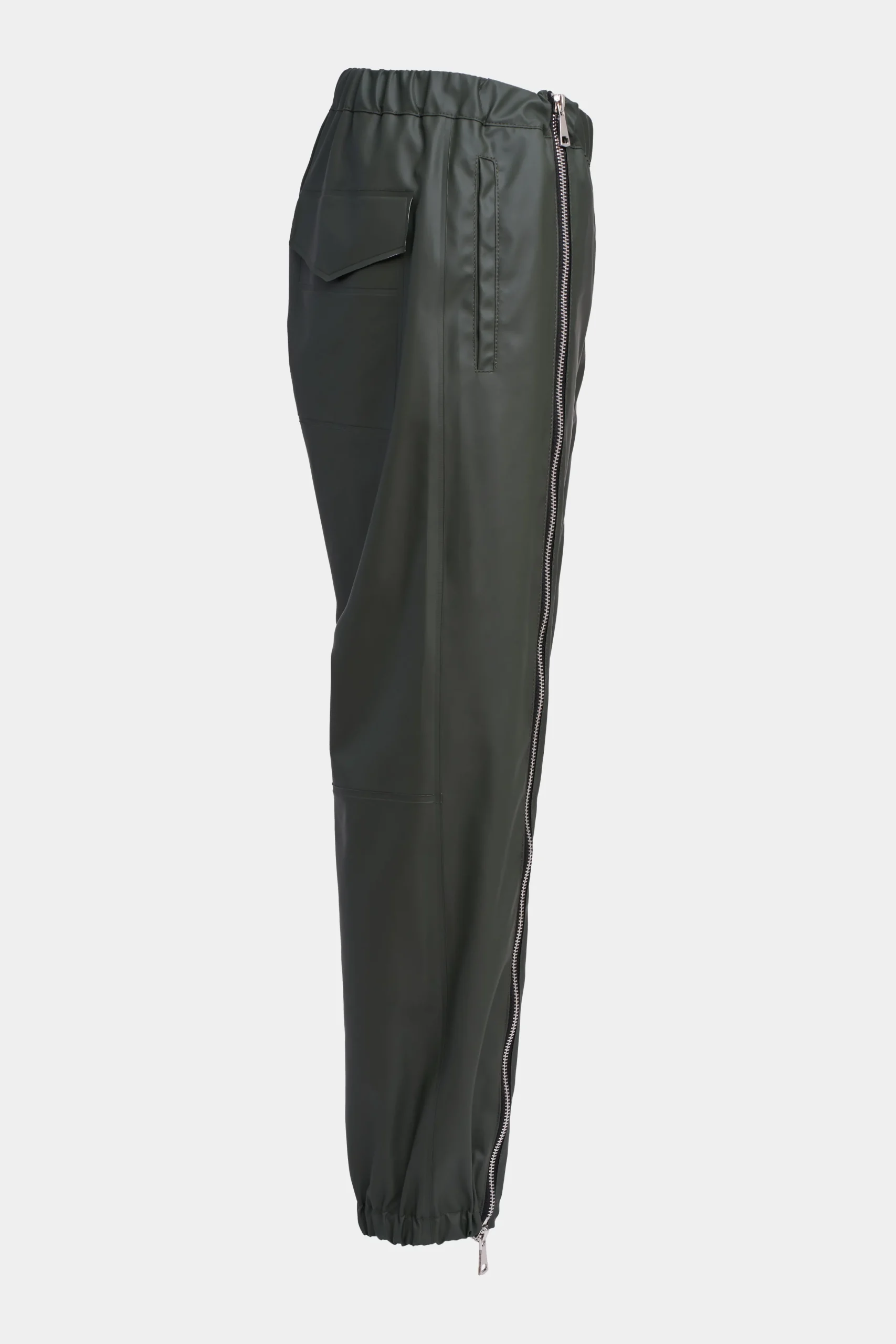 Bromma are coverall trousers for men in light and airy waterproof fabric with a silver metal zip down the front of each leg. The elastic drawstring waist and bottom hems complete the relaxed fit and provide ease of movement while the two-way leg zips make the garment quick and easy to transition in and out of.
