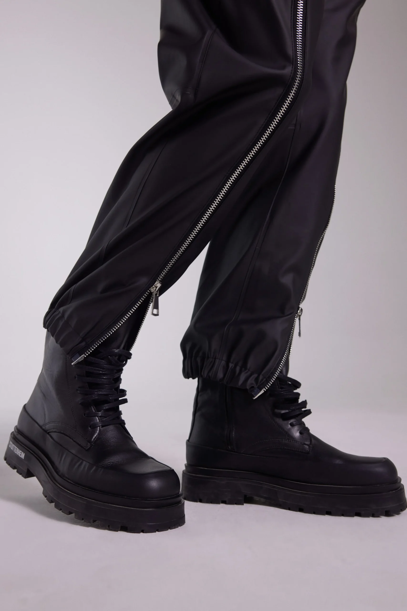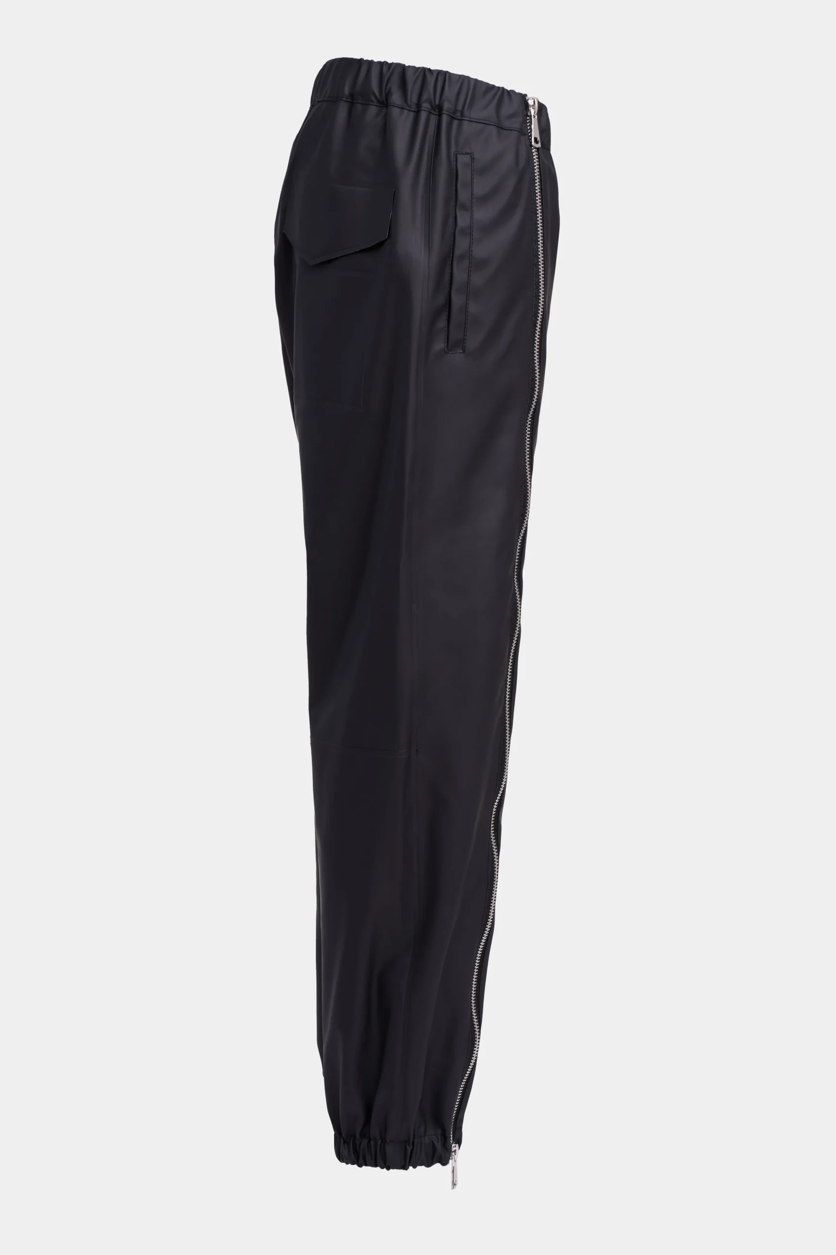 Bromma are coverall trousers for men in light and airy waterproof fabric with a silver metal zip down the front of each leg. The elastic drawstring waist and bottom hems complete the relaxed fit and provide ease of movement while the two-way leg zips make the garment quick and easy to transition in and out of.