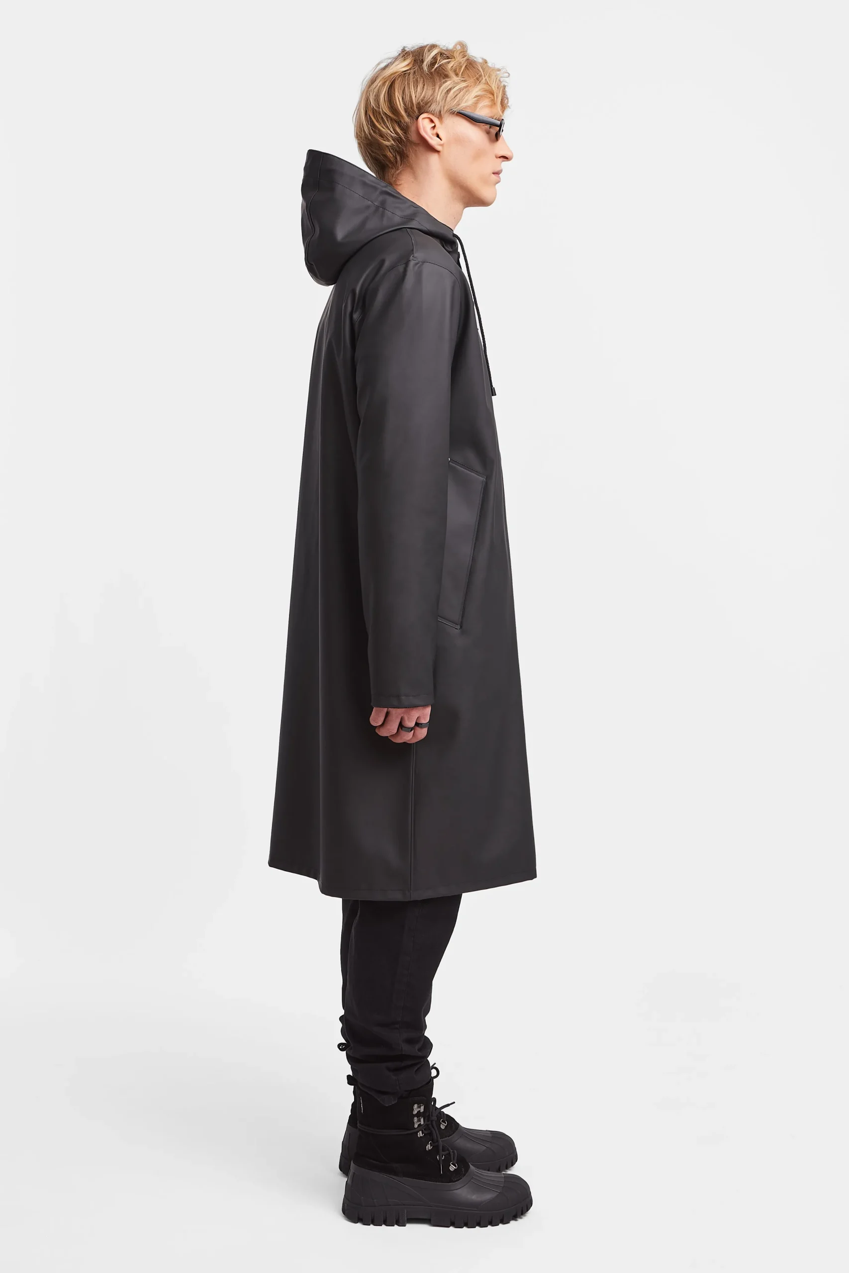 Camden is a hooded zipper parka for men in light yet sturdy waterproof fabric, tailored with double-welded seams to ensure complete protection from water leakage. The relaxed fit and long cut make this piece perfect for rainy conditions all year round. It sports a black aqua guard zipper and extra large pockets. An urban classic, just like its namesake.