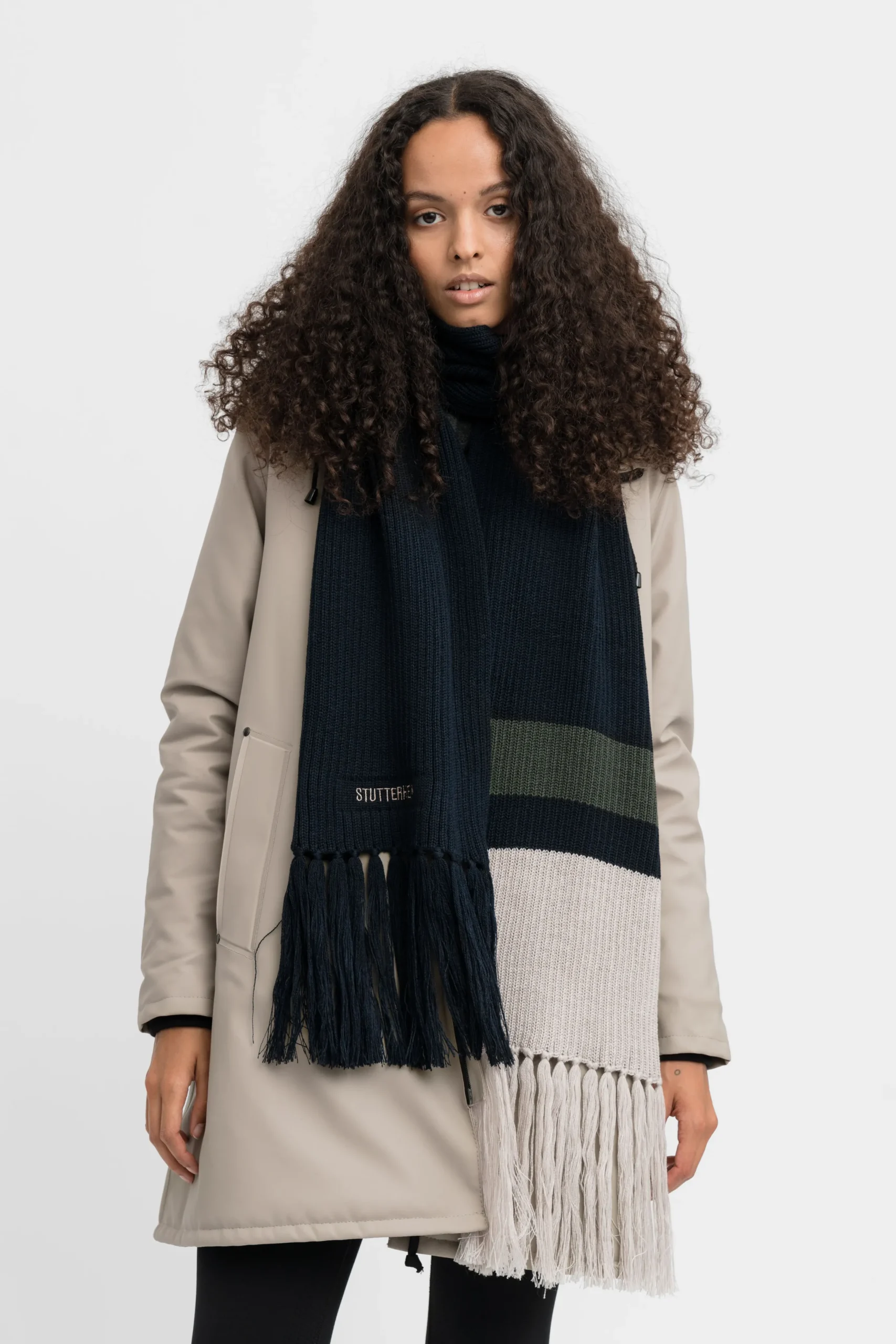 Fringe Scarf is a long rib-knitted scarf for men and women in super soft merino wool. Extra long fringes and colour-block stripes add charm to this perfect accessory to go with your waterproof STUTTERHEIM coat on cold weather days.