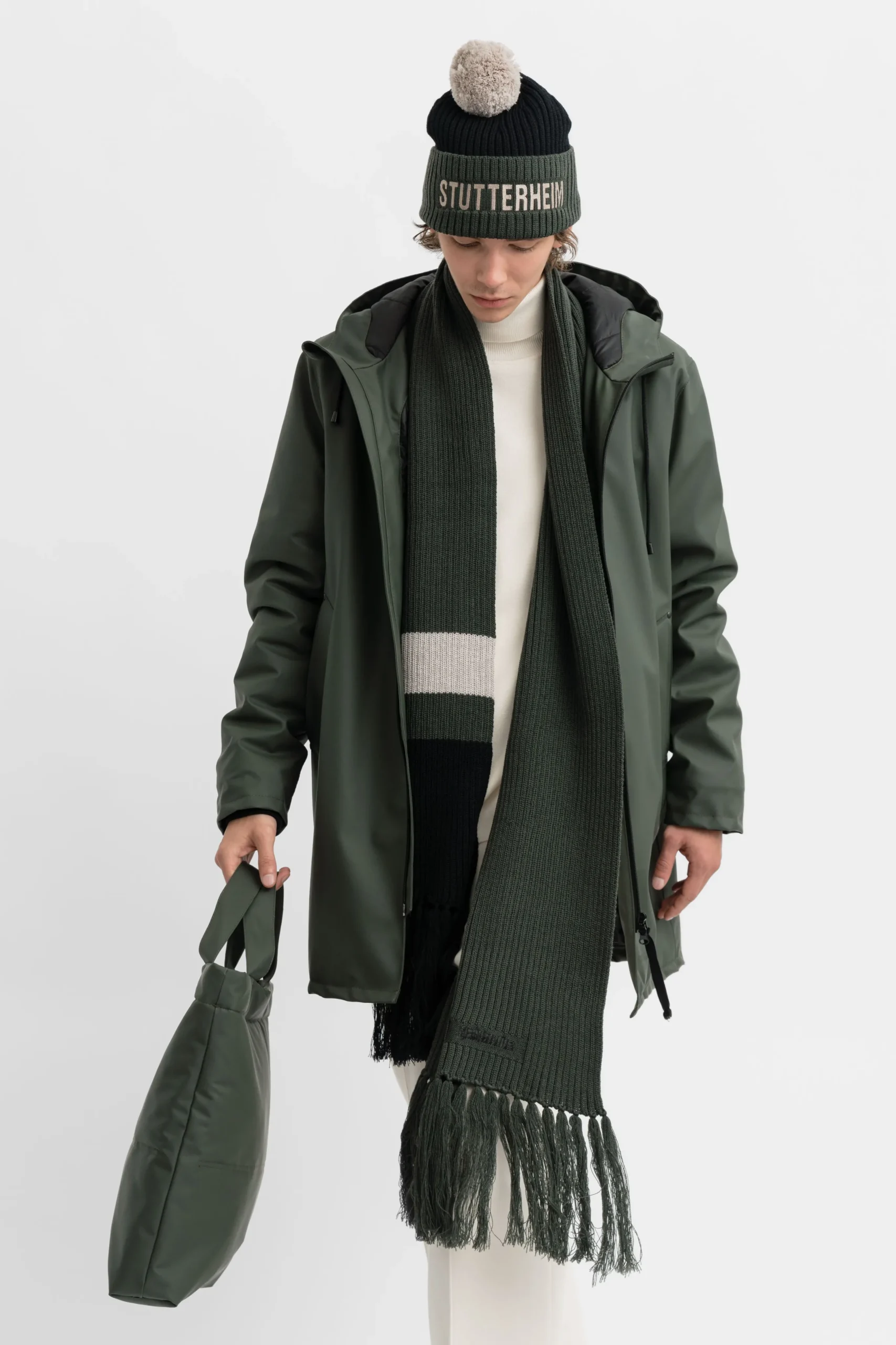 Fringe Scarf is a long rib-knitted scarf for men and women in super soft merino wool. Extra long fringes and colour-block stripes add charm to this perfect accessory to go with your waterproof STUTTERHEIM coat on cold weather days.
