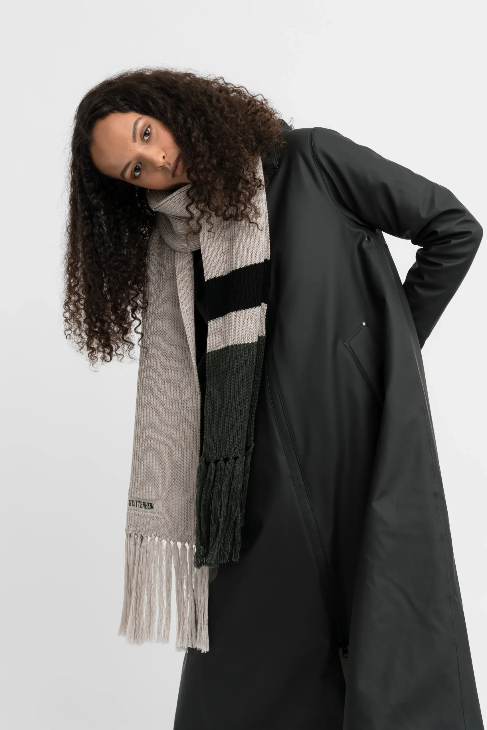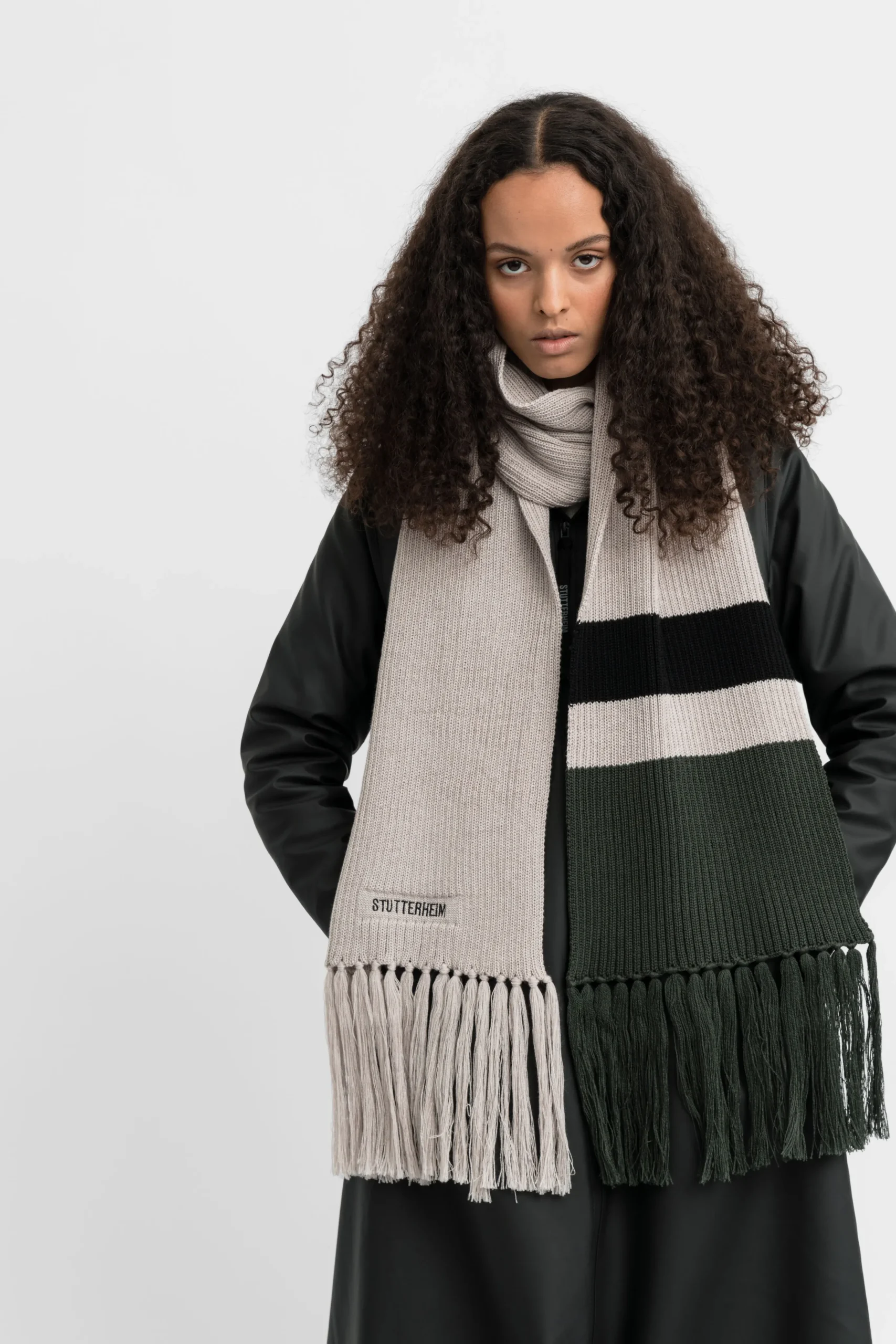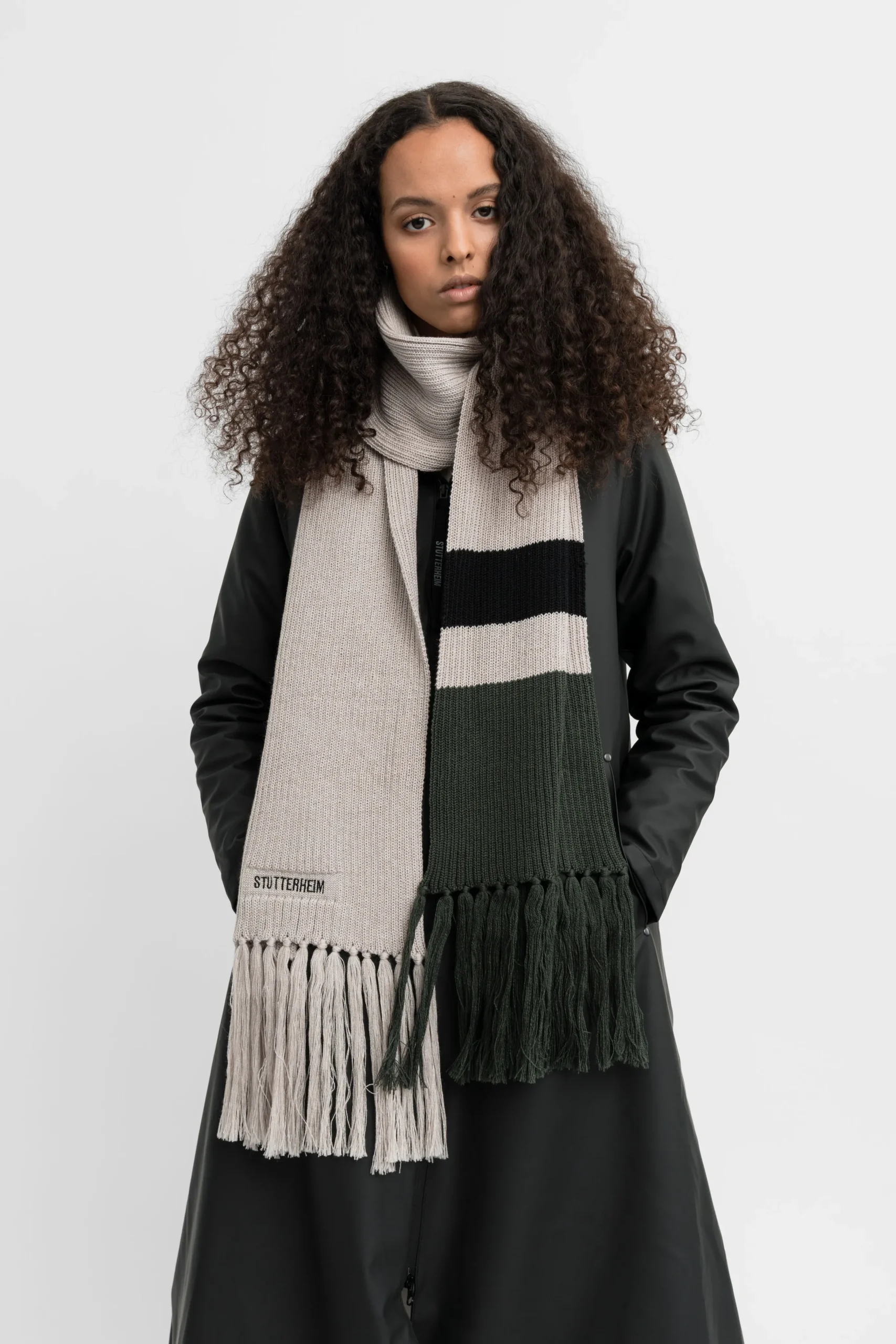 Fringe Scarf is a long rib-knitted scarf for men and women in super soft merino wool. Extra long fringes and colour-block stripes add charm to this perfect accessory to go with your waterproof STUTTERHEIM coat on cold weather days.