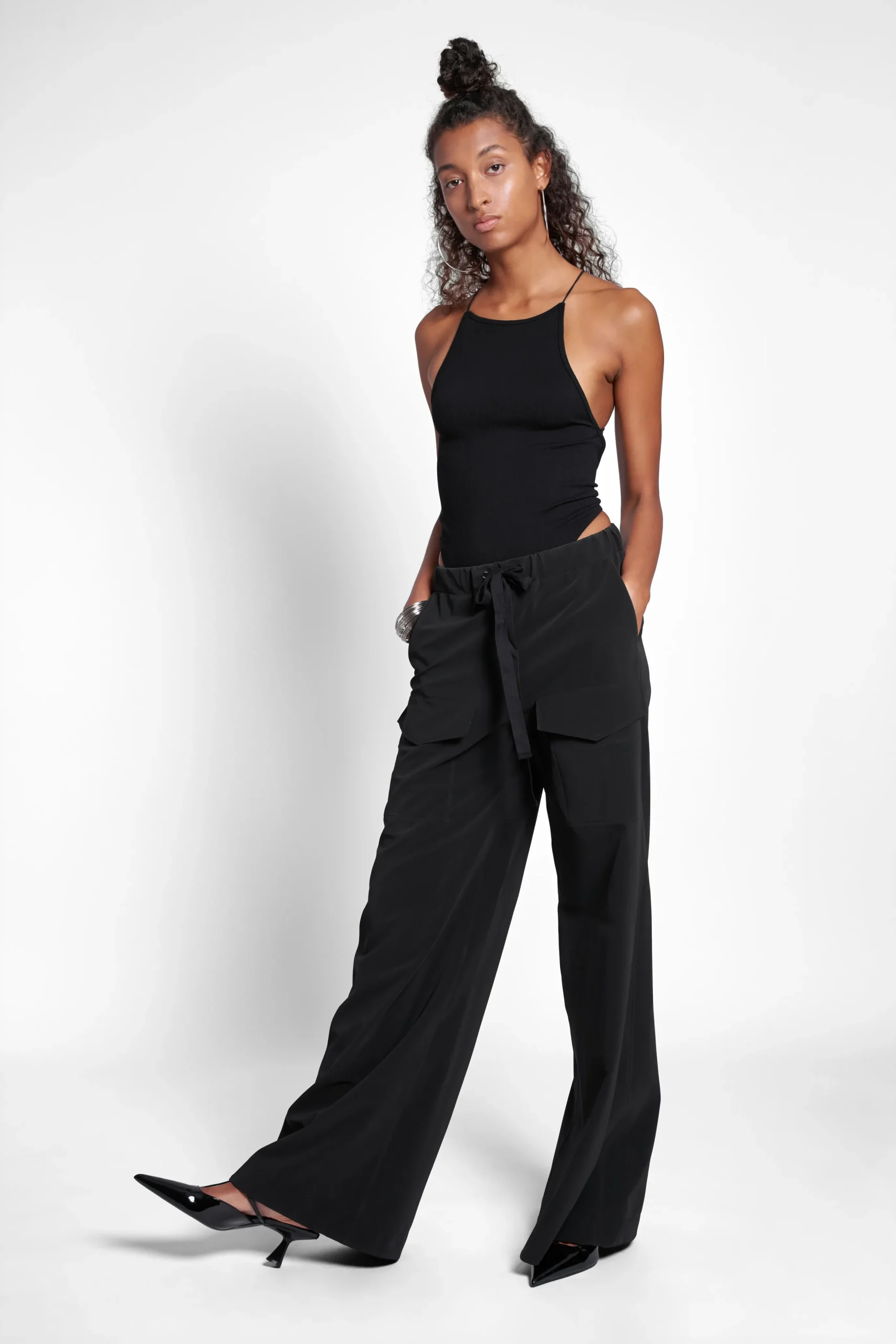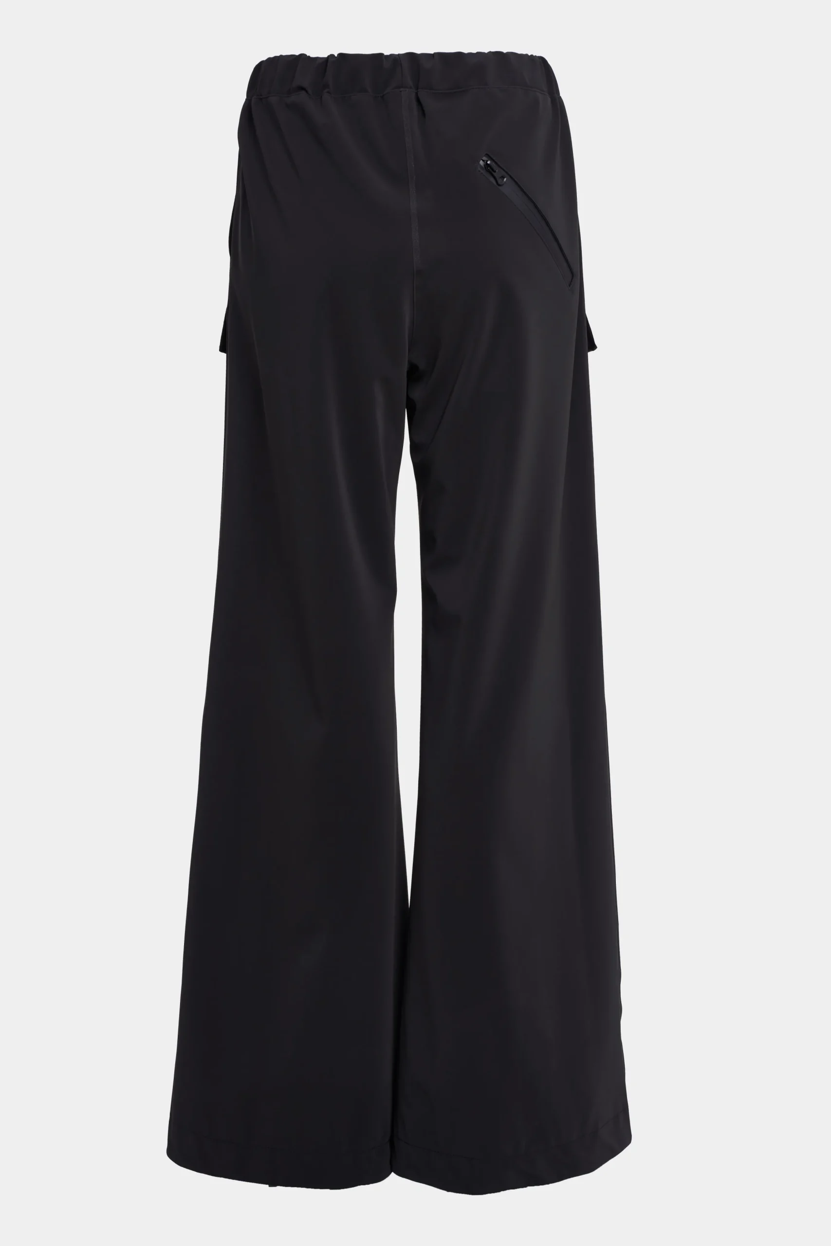 Jarla Matte are coverall trousers for women in light and airy waterproof fabric with a matte finish. Constructed with double-welded seams for complete rain protection, these trousers are perfect for staying stylish in wet weather. The high drawstring waist and wide leg add femininity and ease of movement as well as making the trousers quick and easy to transition in and out of.The front patch pocket on each leg and slanted single back pocket with an aqua guard zipper add practicality as well as a stylish touch.