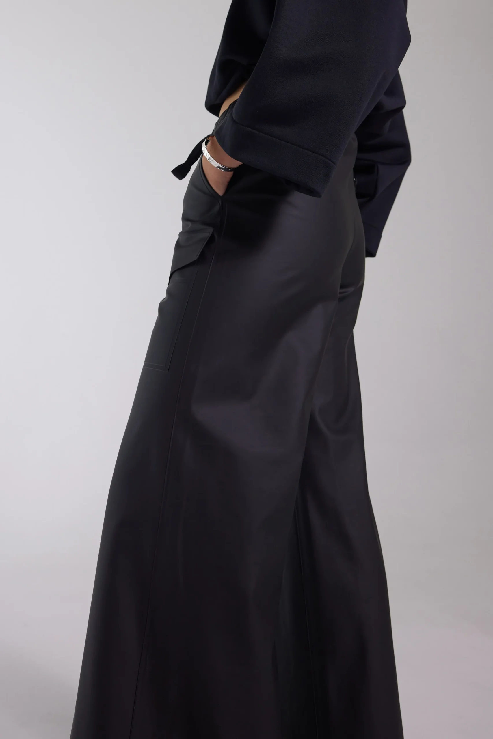 Jarla are coverall trousers for women in light and airy waterproof fabric. Constructed with double-welded seams for complete rain protection, these trousers are perfect for staying stylish in wet weather. The high drawstring waist and wide leg add femininity and ease of movement as well as making the trousers quick and easy to transition in and out of.The front patch pocket on each leg and slated single back pocket with an aqua guard zipper add practicality as well as a stylish touch.