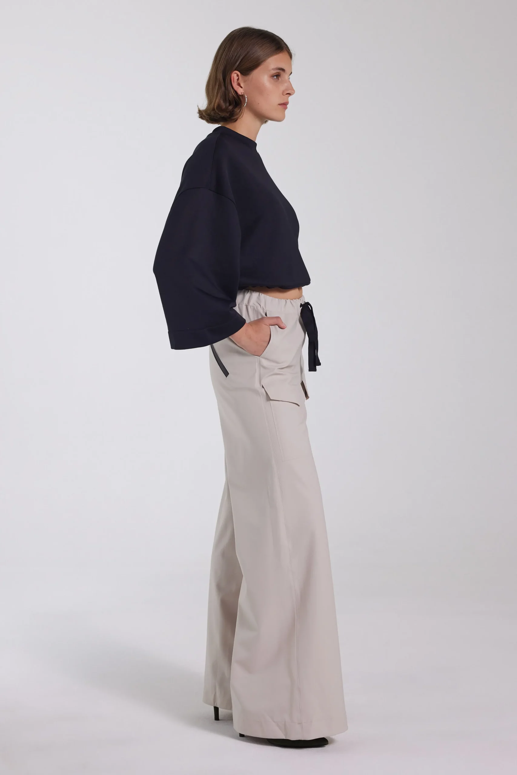 - High-waist with elasticated hem