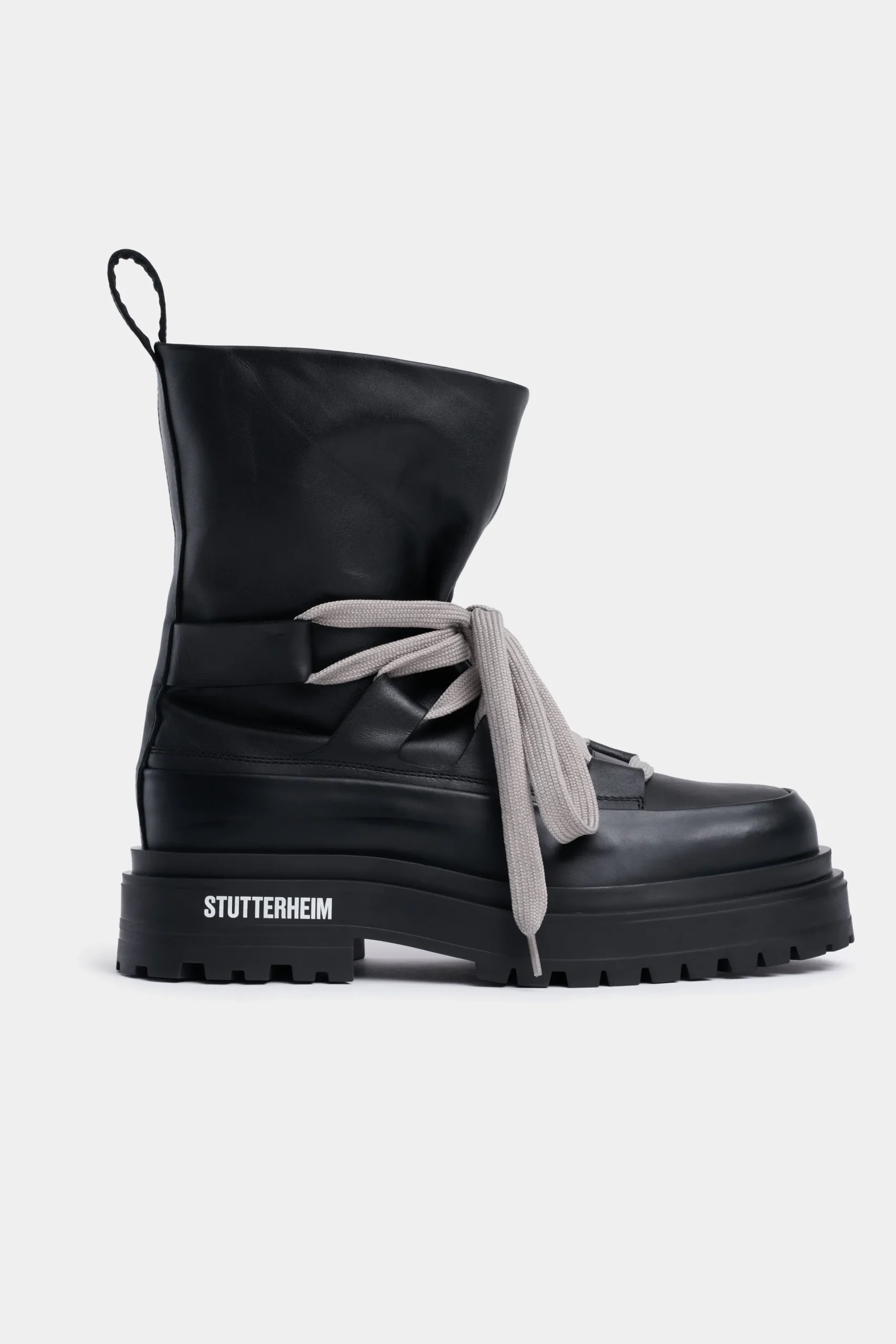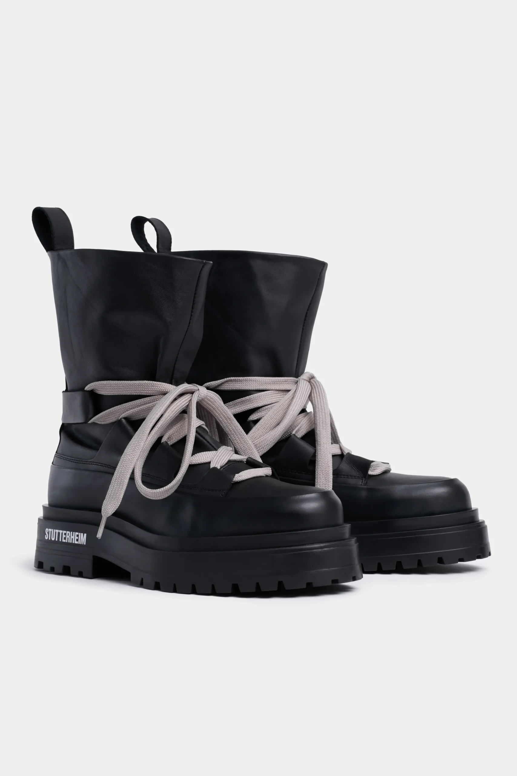 - Raised STUTTERHEIM logo on rubber sole exterior