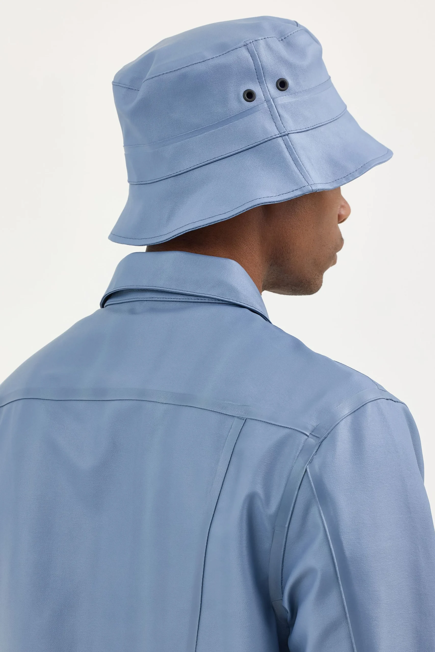 A classic bucket hat, this unisex gem from the Lee® x STUTTERHEIM collaboration is built tough, able to withstand even the most torrential rain while still keeping your head dry. Artisanally crafted in two shades of blue, it’s designed to match the Lee x STUTTERHEIM Storm Rider Raincoat for a fully waterproof look that brings sunshine to even the cloudiest of days.