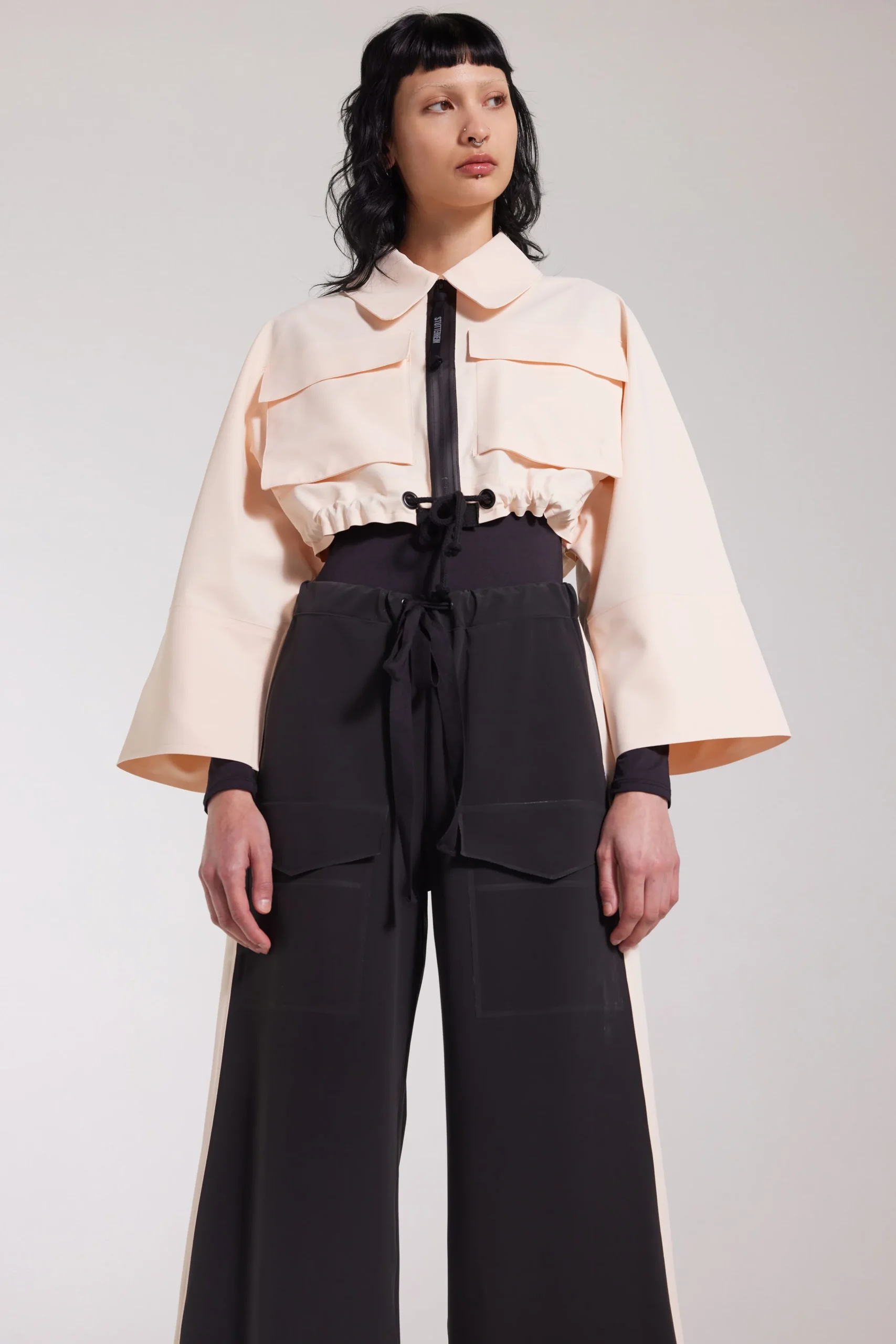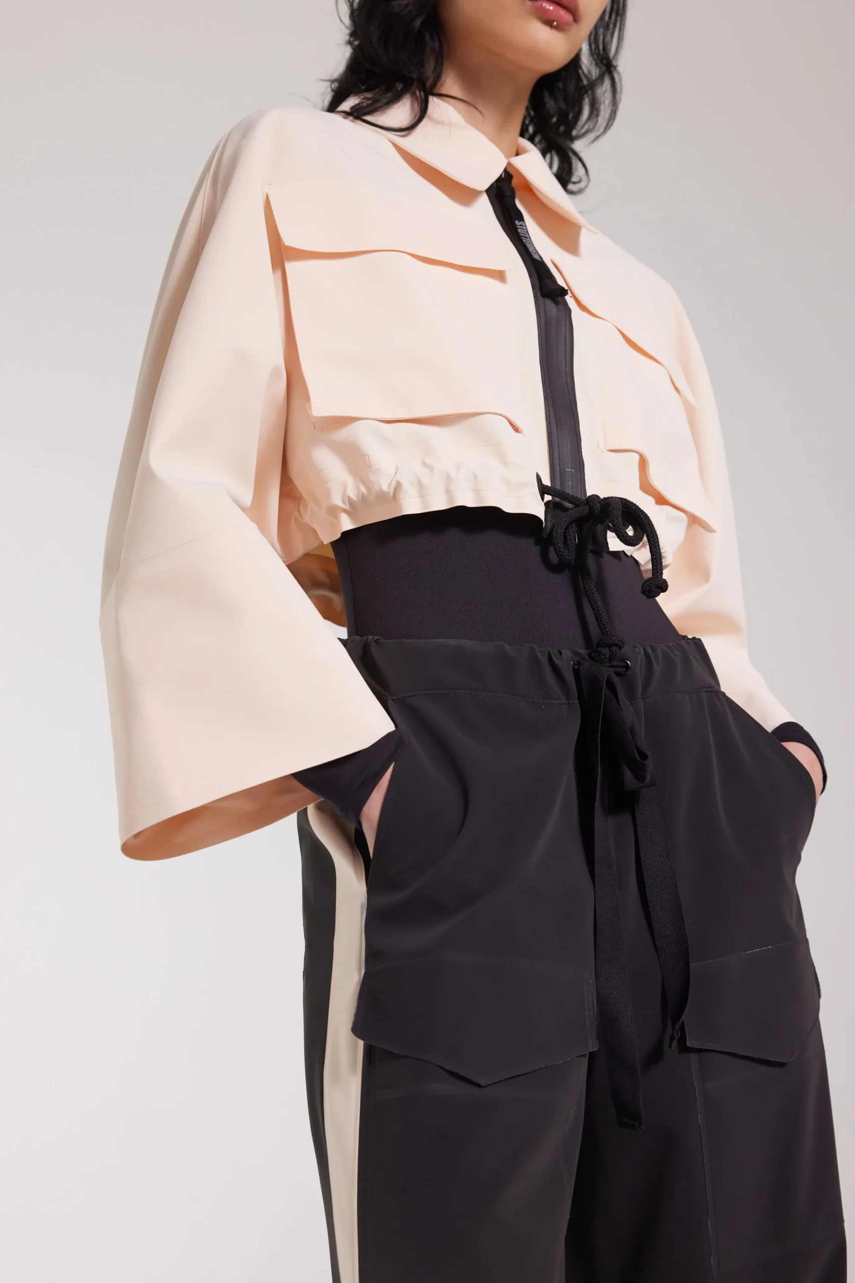- Chunky laced drawstring at waist hem