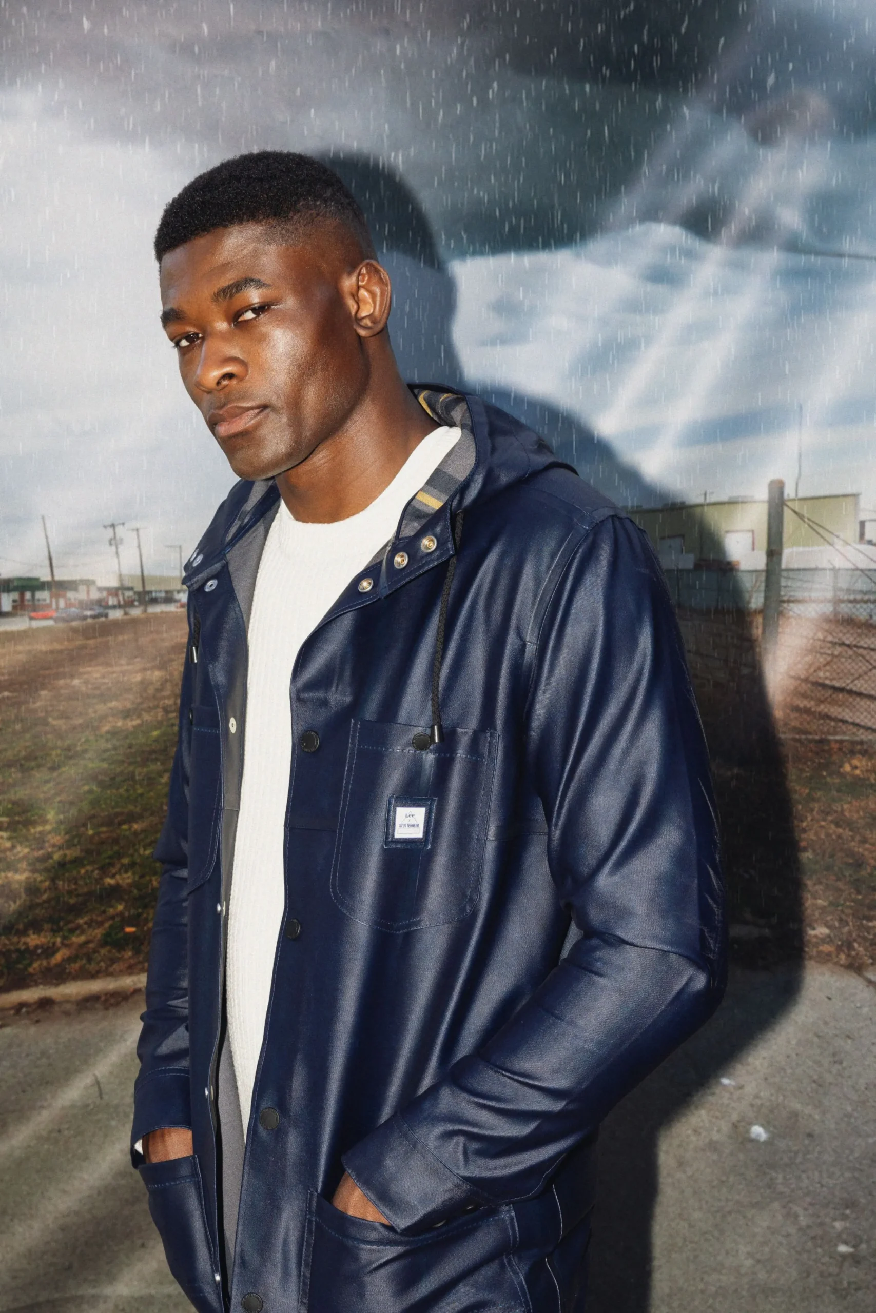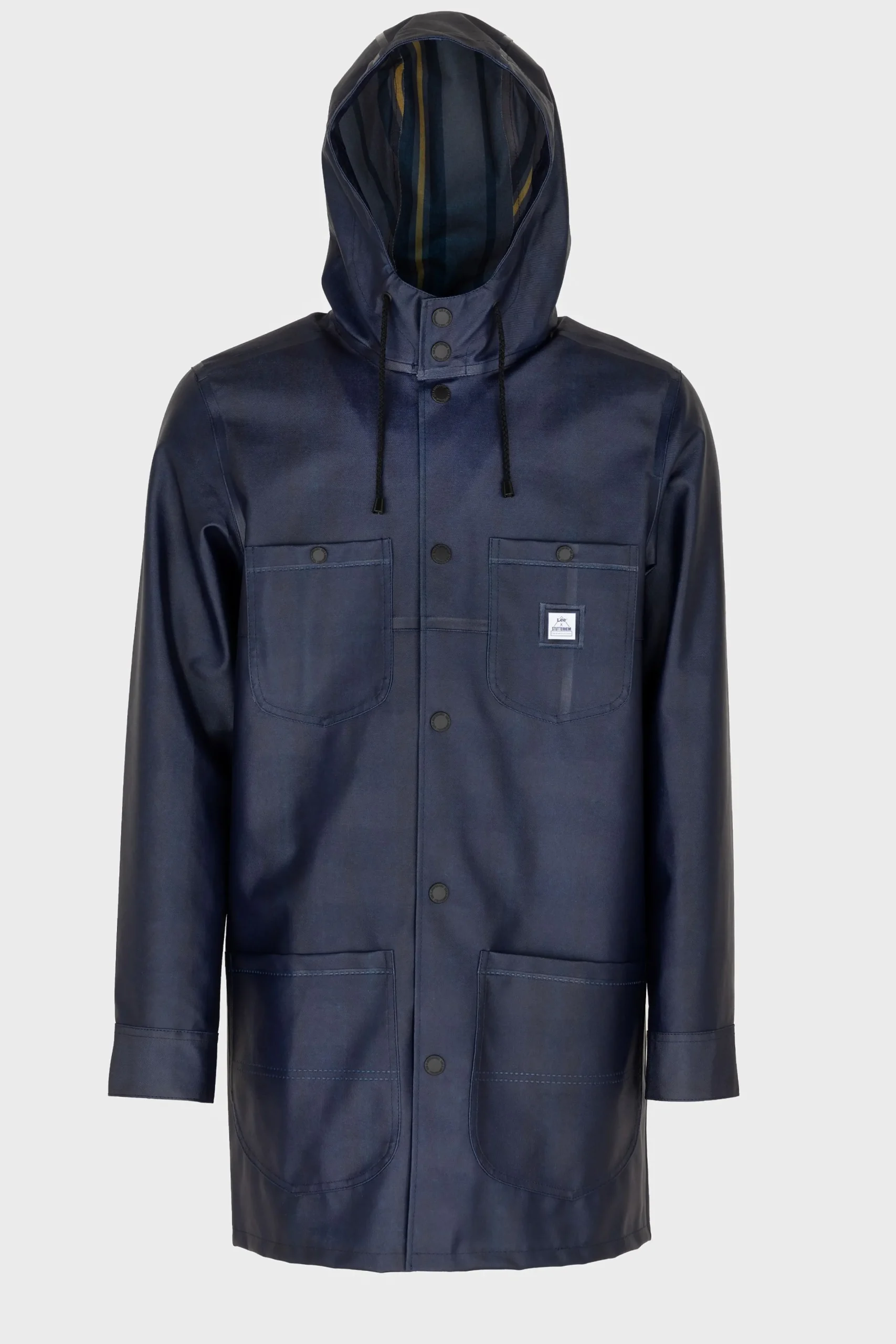 Heritage American workwear and industry-leading Swedish fabrics combine in the new men’s chore raincoat from Lee® x STUTTERHEIM. Crafted from waterproof material, this is the coat to beat when it comes to wet weather protection. It features a durable rain-ready hood and mock blanket lined interior inspired by our original Storm Rider™ jacket, with roomy pockets to keep your essentials dry. Next time a storm rolls through, you’ll be cleared for any adventure.