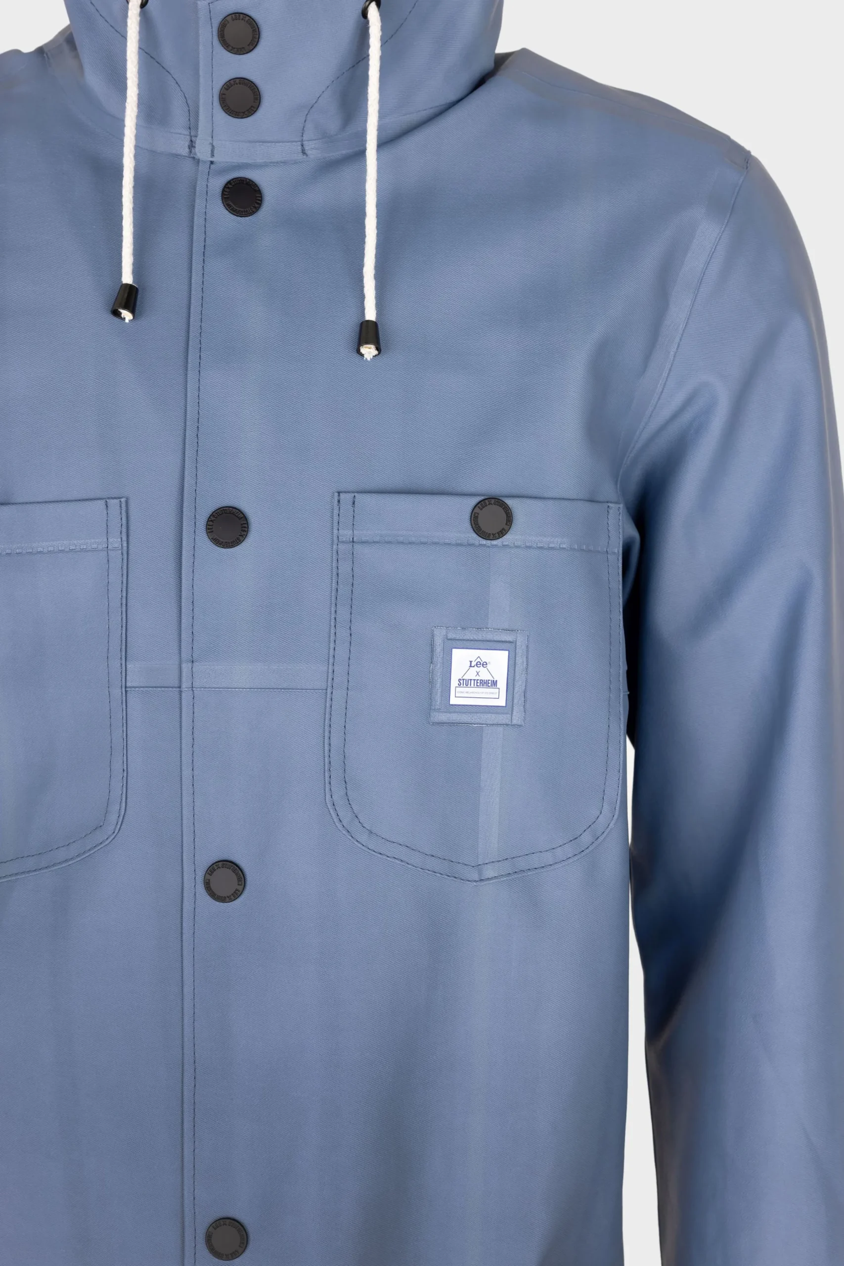 Heritage American workwear and industry-leading Swedish fabrics combine in the new men’s chore raincoat from Lee® x STUTTERHEIM. Crafted from waterproof material, this is the coat to beat when it comes to wet weather protection. It features a durable rain-ready hood and mock blanket lined interior inspired by our original Storm Rider™ jacket, with roomy pockets to keep your essentials dry. Next time a storm rolls through, you’ll be cleared for any adventure.