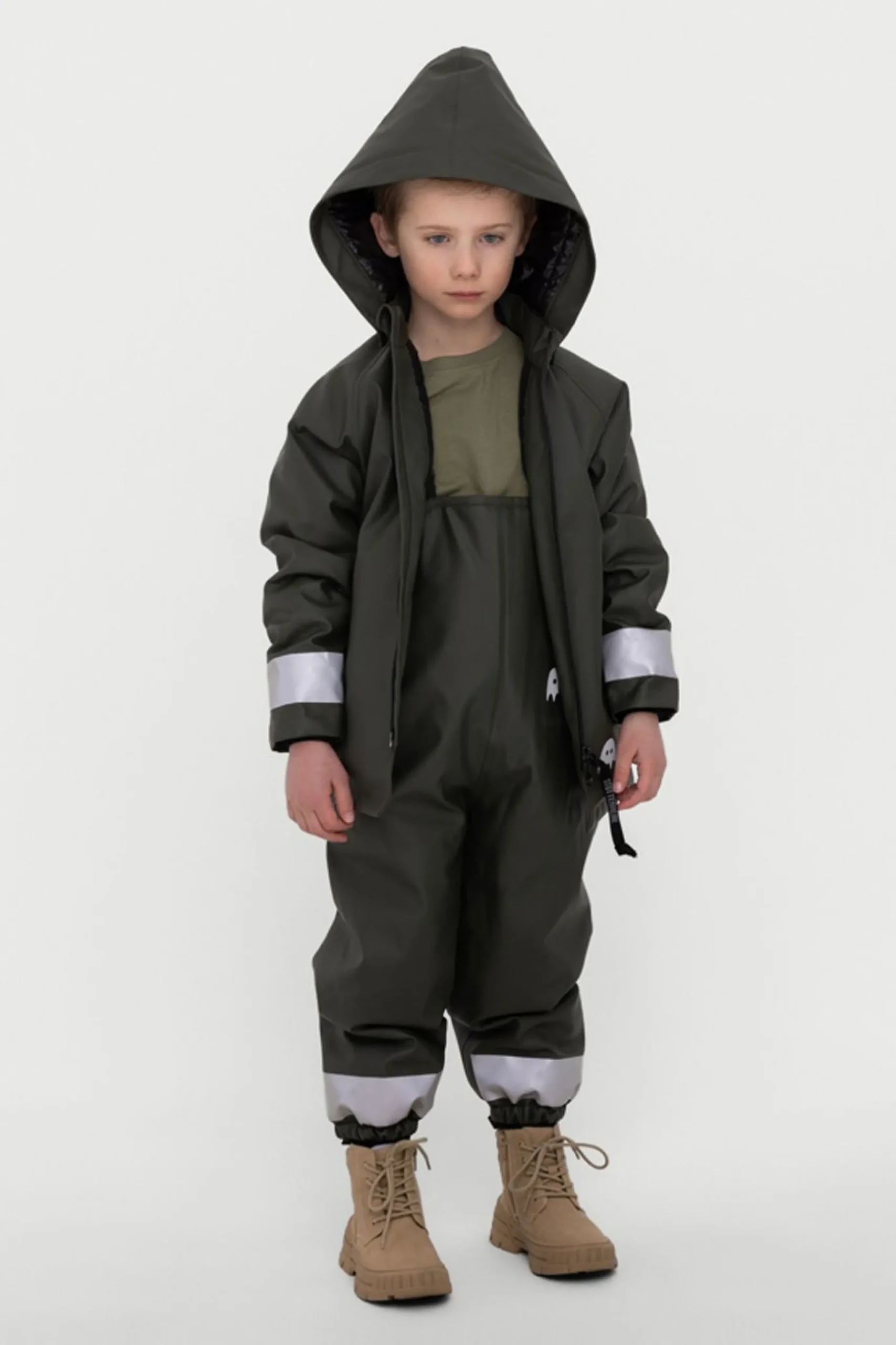 Mini Winter is the kids’ version of our style Stockholm Winter, in mid-weight 280-gram rubberised cotton with 150-gram technical insulator filling. Featuring a reflective stripe on each sleeve, reflective ghost emblem on the front and reflective logo on the back for increased visibility. With a snap metal detachable hood, without drawstrings for safety, 100% rainproof aqua guard zipper, knitted wristlets and fleece-lined side pockets.