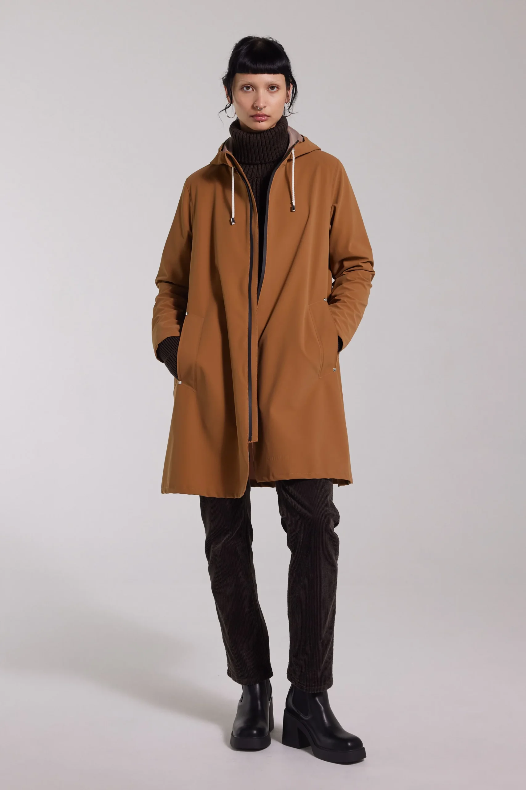 Mosebacke Lightweight Zip is an artisanally made a-line-shaped raincoat for women. The ultra-light waterproof fabric is tailored with double-welded seams and equipped with an aqua guard zipper, making it impossible for any moisture to seep through. Ease of movement and comfort is achieved with under-arm eyelets and a drawstring hood. The thin and packable fabric makes this garment perfect in unpredictable weather and for travelling.
