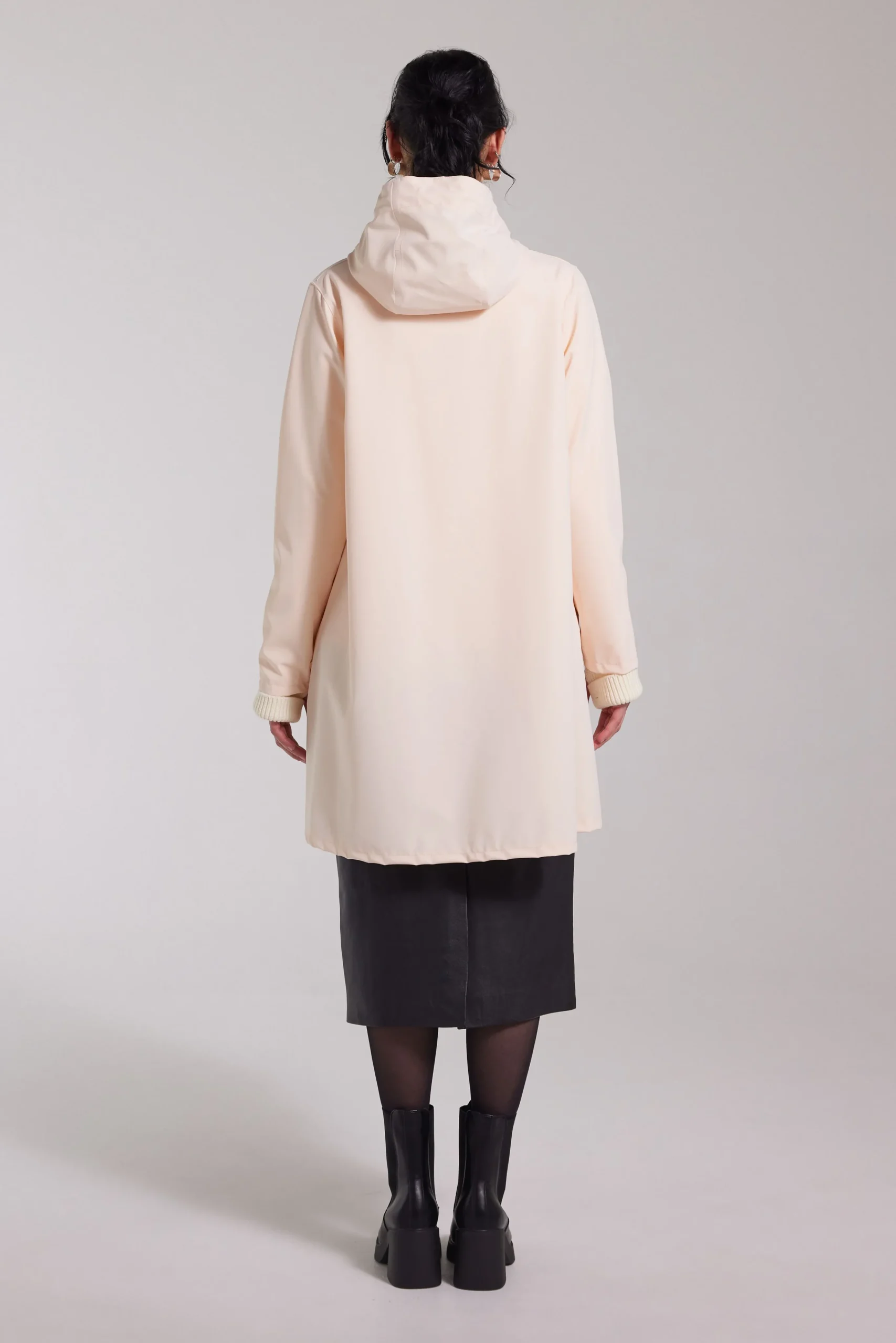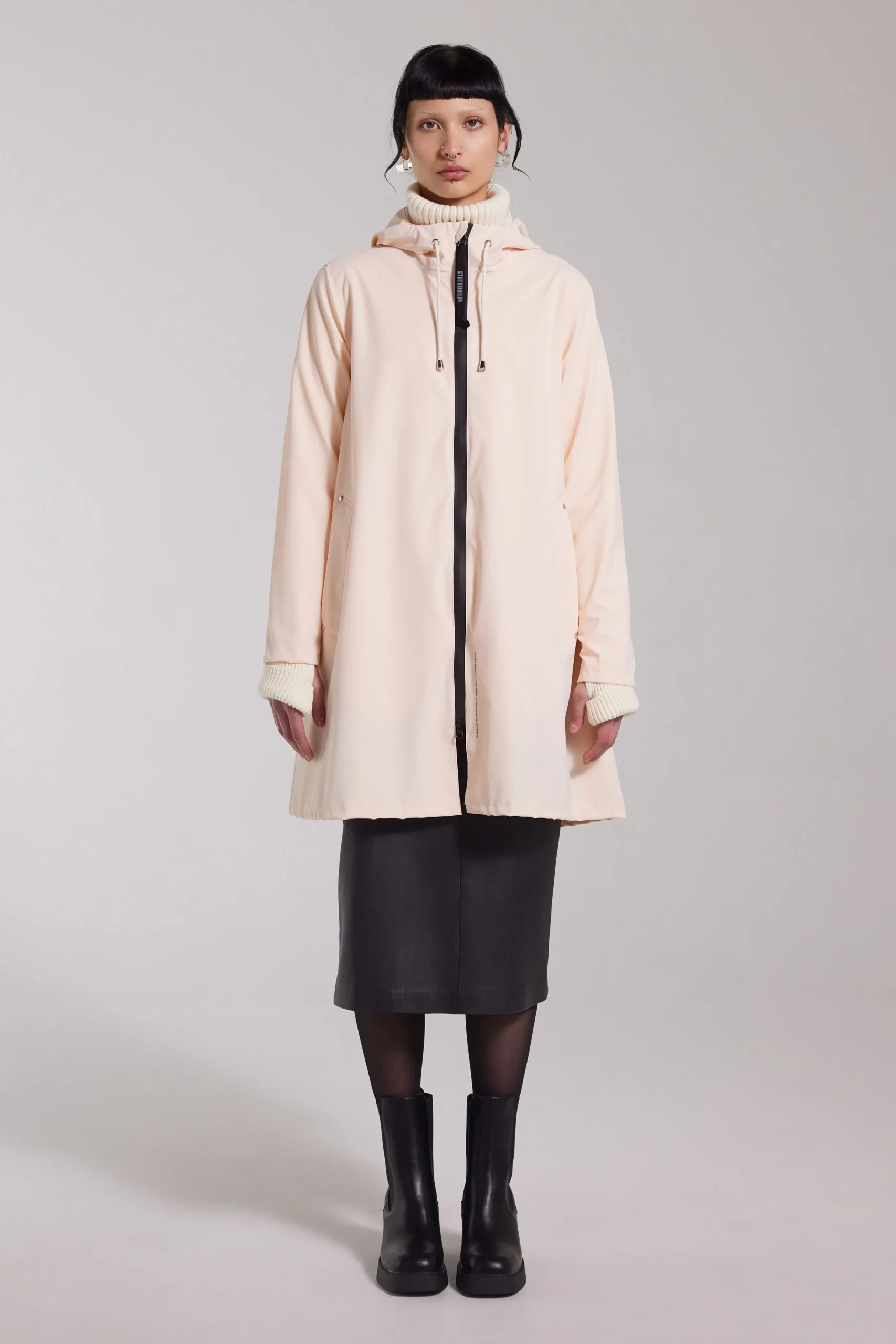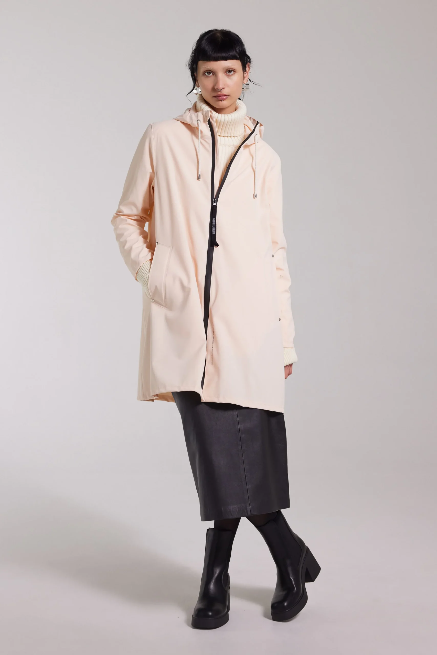 Mosebacke Lightweight Zip is an artisanally made a-line-shaped raincoat for women. The ultra-light waterproof fabric is tailored with double-welded seams and equipped with an aqua guard zipper, making it impossible for any moisture to seep through. Ease of movement and comfort is achieved with under-arm eyelets and a drawstring hood. The thin and packable fabric makes this garment perfect in unpredictable weather and for travelling.
