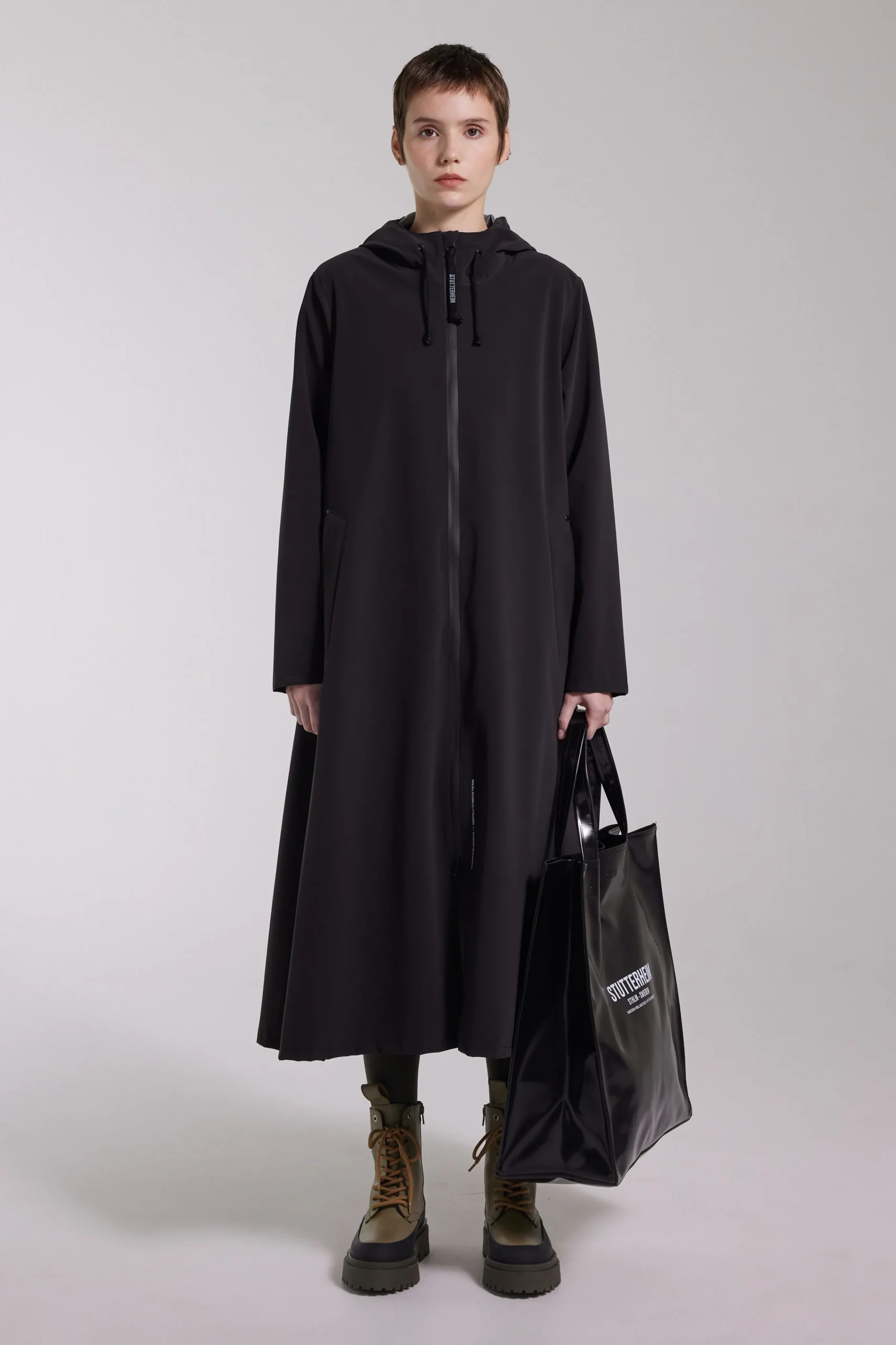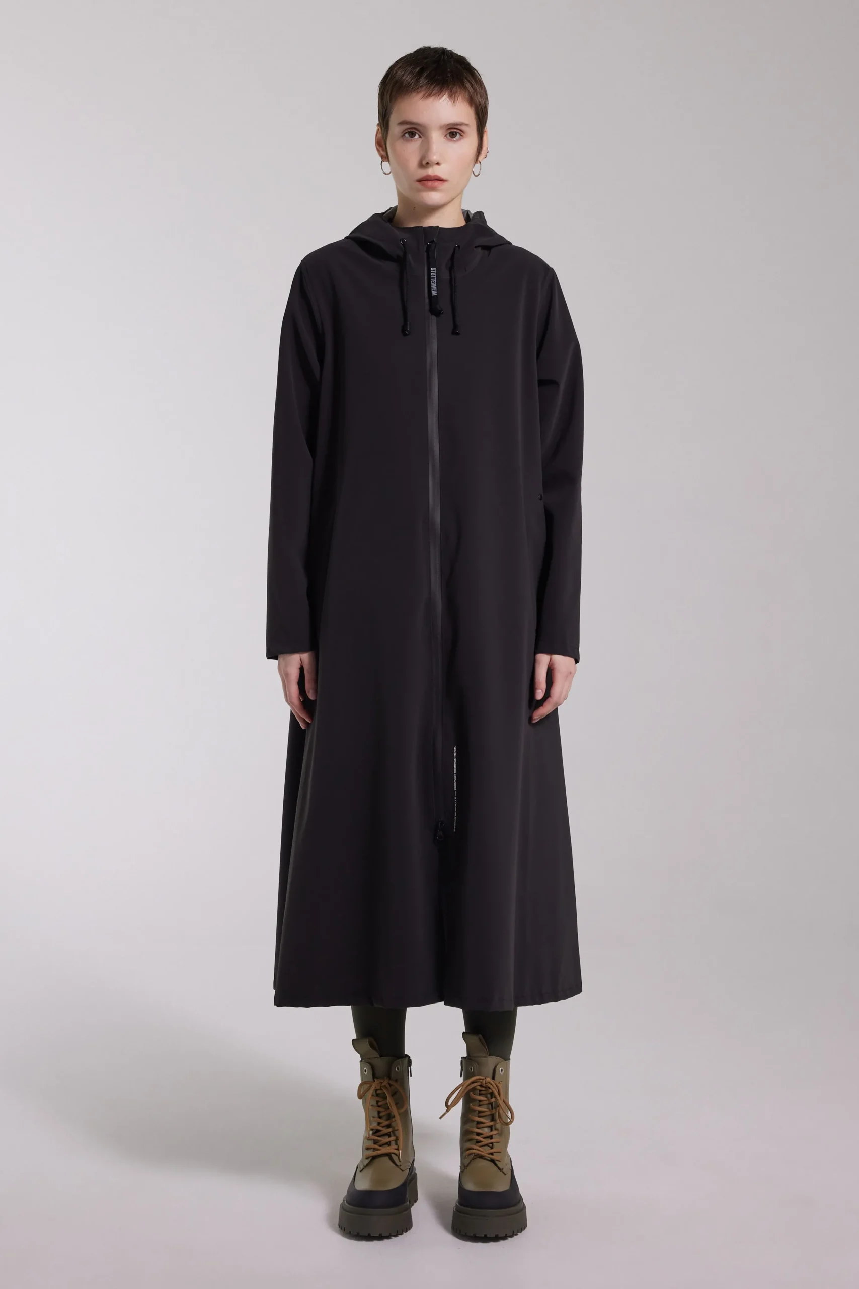 Mosebacke Long Matte Zip is an artisanally made knee-length and a-line-shaped raincoat for women. The ultra-light waterp…