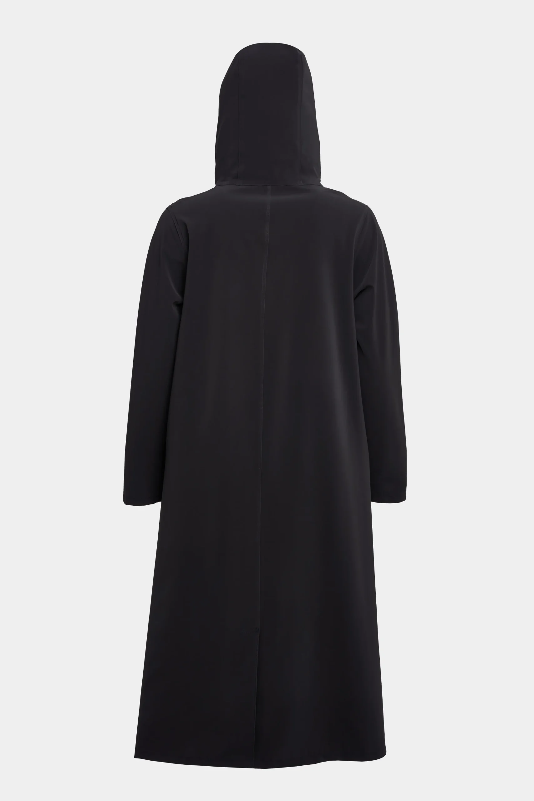 Mosebacke Long Matte Zip is an artisanally made knee-length and a-line-shaped raincoat for women. The ultra-light waterproof fabric with a matte finsh is tailored with double-welded seams and equipped with an aqua guard zipper, making it impossible for any moisture to seep through. Ease of movement and comfort is achieved with under-arm eyelets and a drawstring hood. The thin and packable fabric makes this garment perfect in unpredictable weather and for travelling.