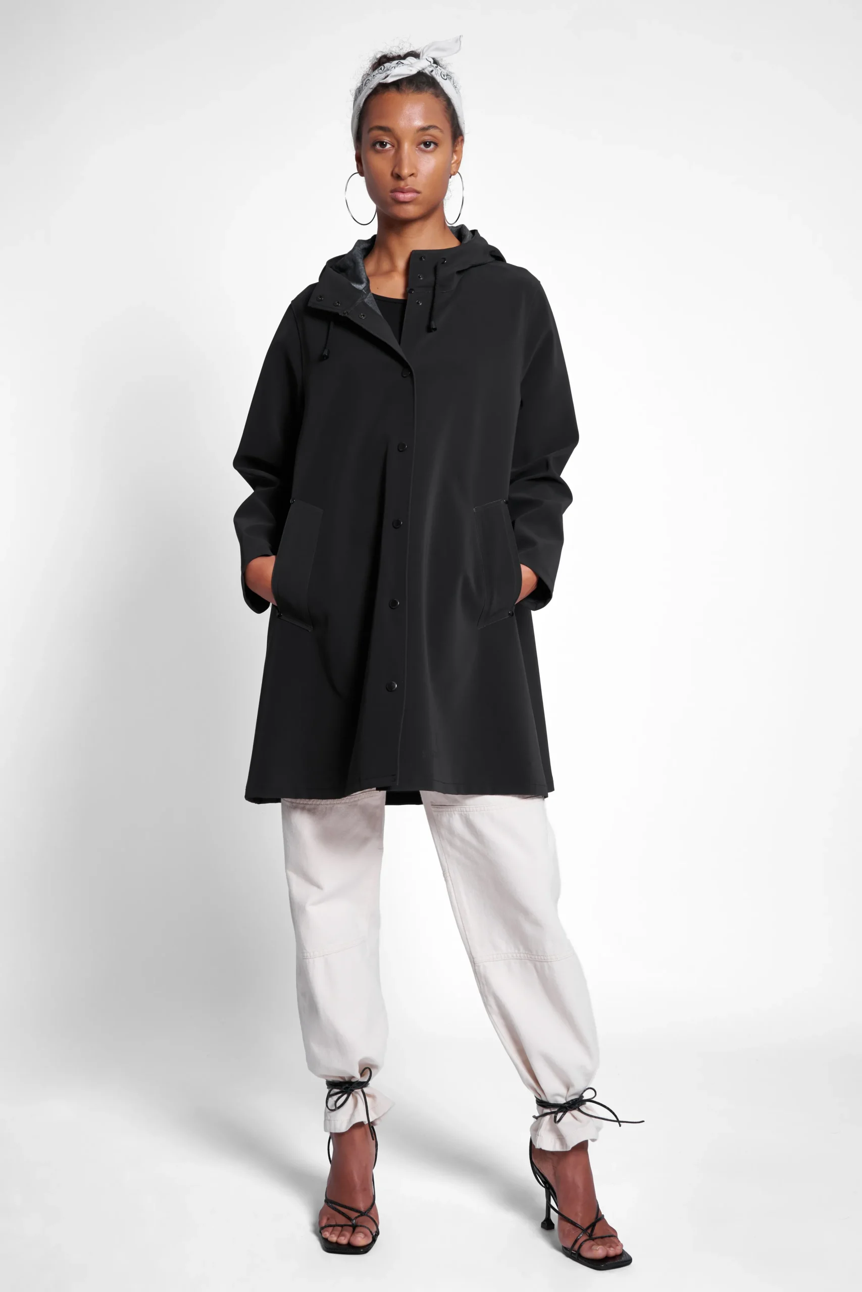 Mosebacke Matte is an artisanally made a-line-shaped raincoat for women. The matte textured finish waterproof fabric is tailored with double-welded seams, making it impossible for any moisture to seep through. Ease of movement and comfort is achieved with under-arm eyelets and a drawstring hood.