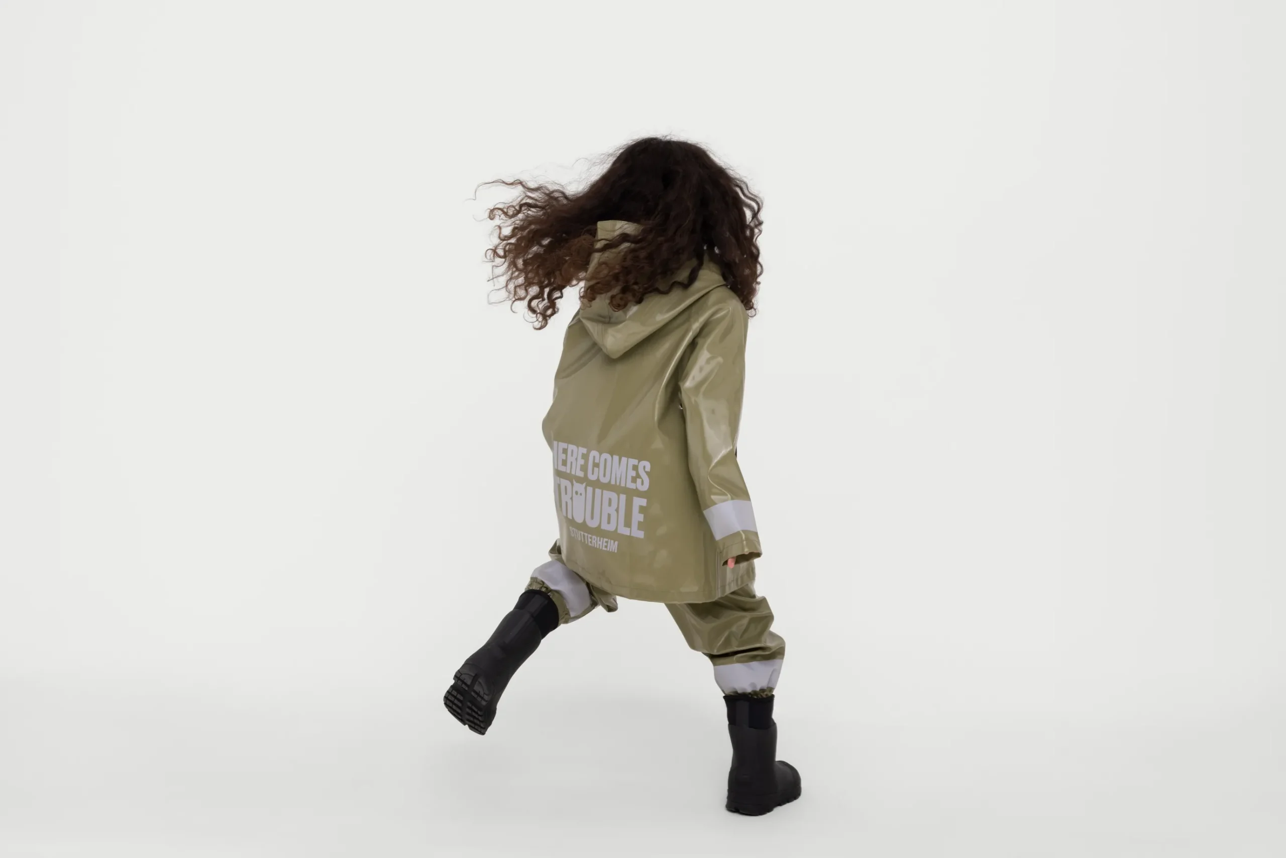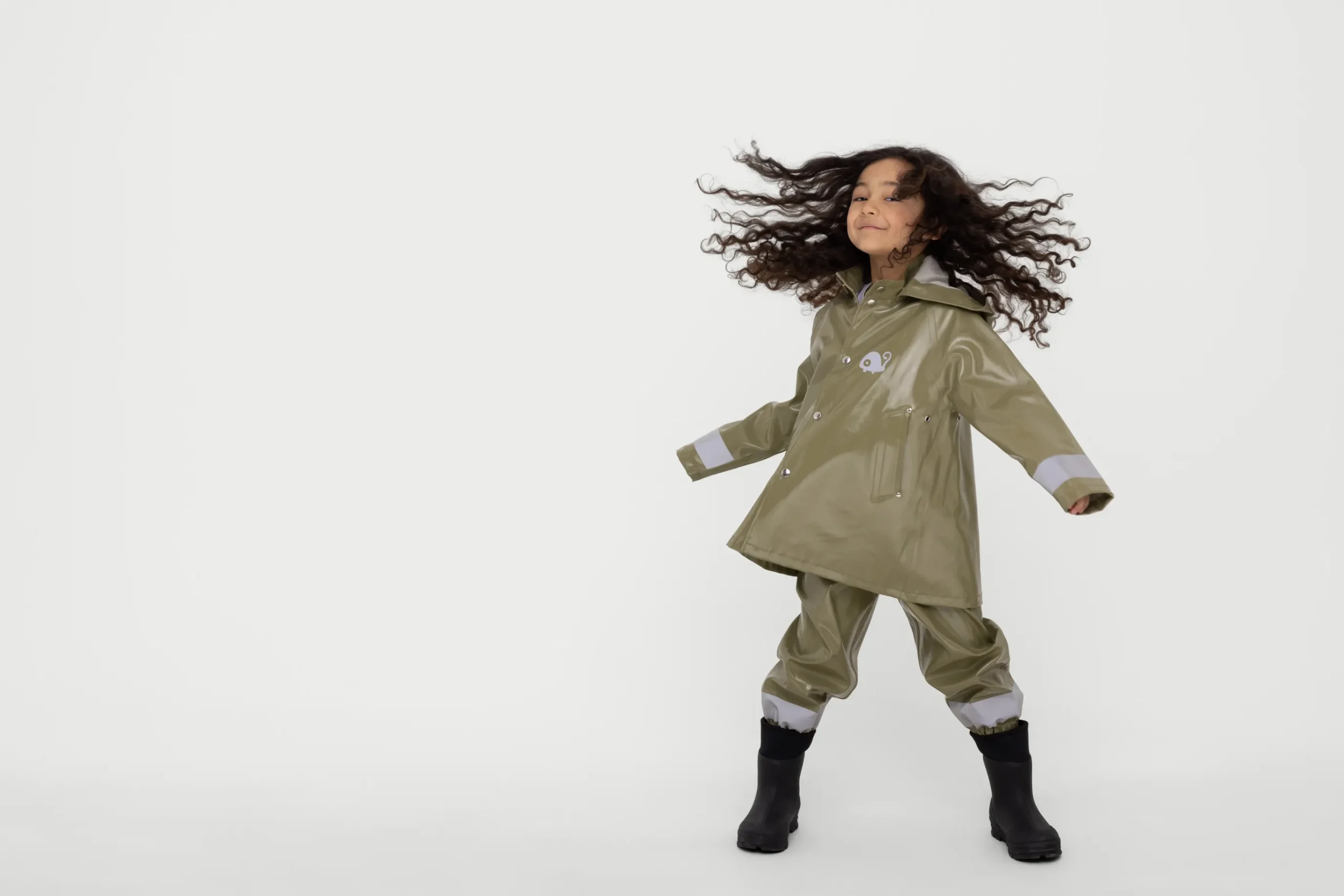 Mosebacke Mini Opal is a raincoat for kids in light yet sturdy waterproof fabric with a shiny high-gloss finish, based on our classic Mosebacke raincoat design. This a-line style has reflective details on the sleeves, back, and chest, increasing visibility and safety when worn. Tailored with double-welded seams which makes it impossible for any moisture to seep through – ensuring complete rain protection.