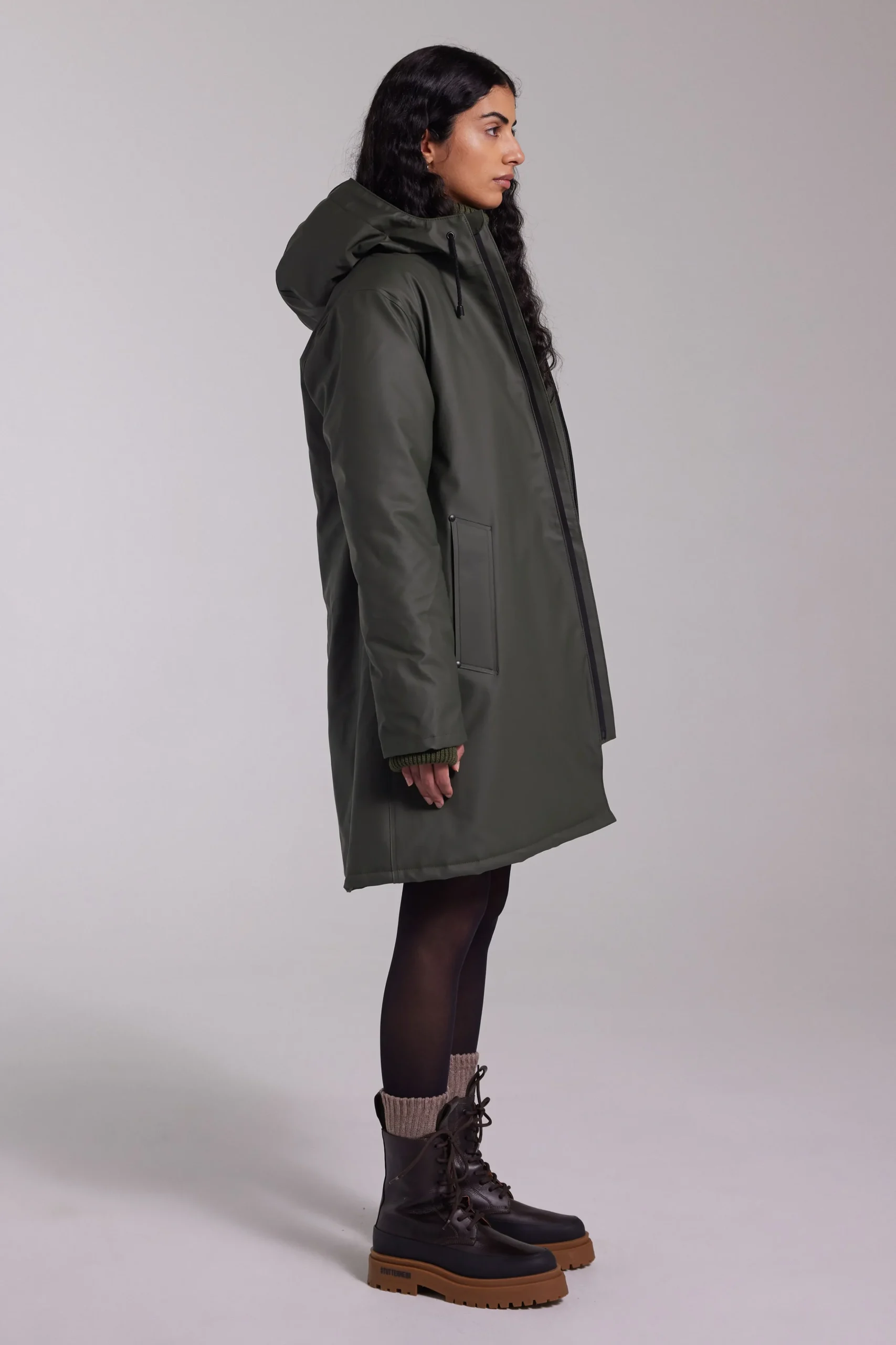 Mosebacke Winter is an artisanally made a-line-shaped warm raincoat for women. The sturdy and hard-wearing waterproof sh…