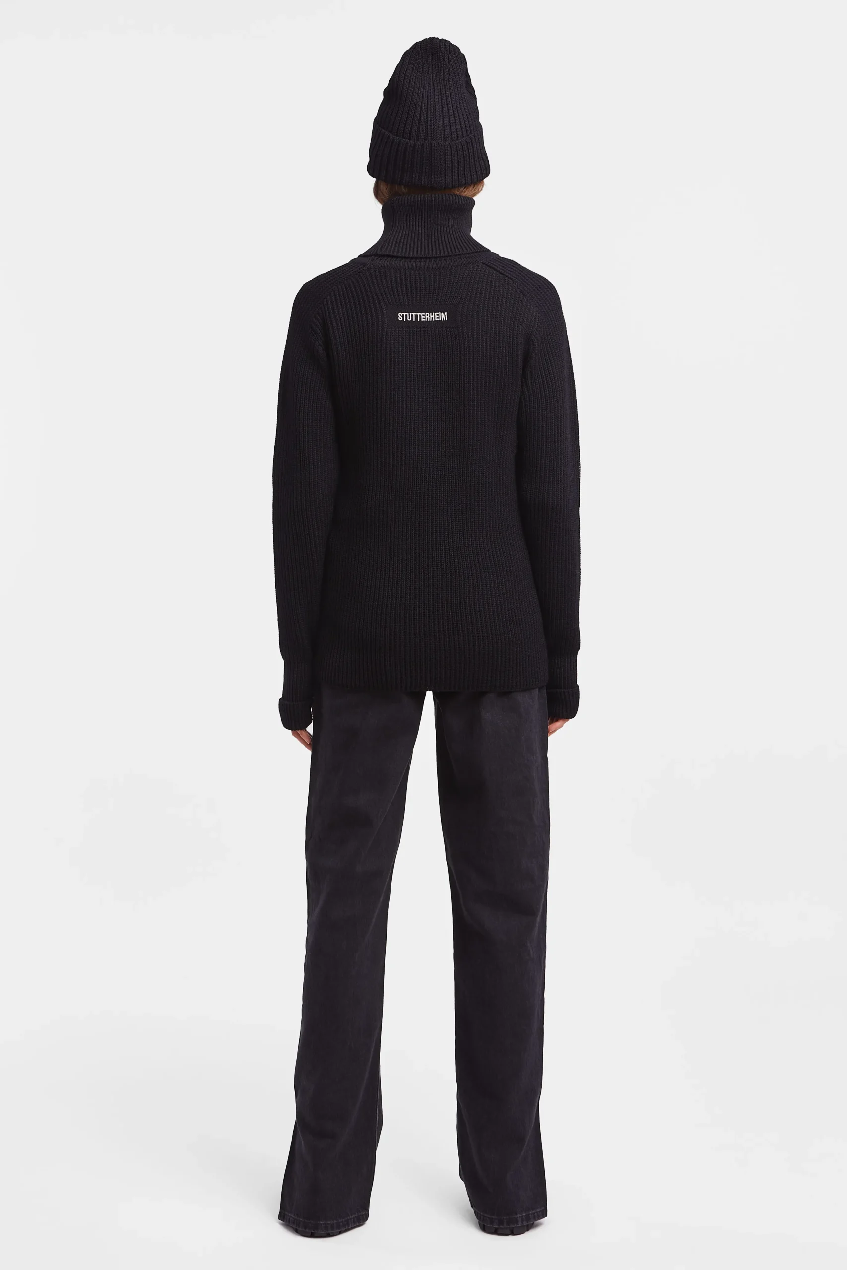 The Original Roller Sweater is a roll-neck rib knitted jumper made from 100% merino wool. A perfect match to our raincoats, this incredibly soft sweater will add an extra layer of warmth when needed. A classic unisex style that is a core wardrobe essential. With design details such as an extendable cuff with thumb grip and an embroidered STUTTERHEIM logo on the back.
