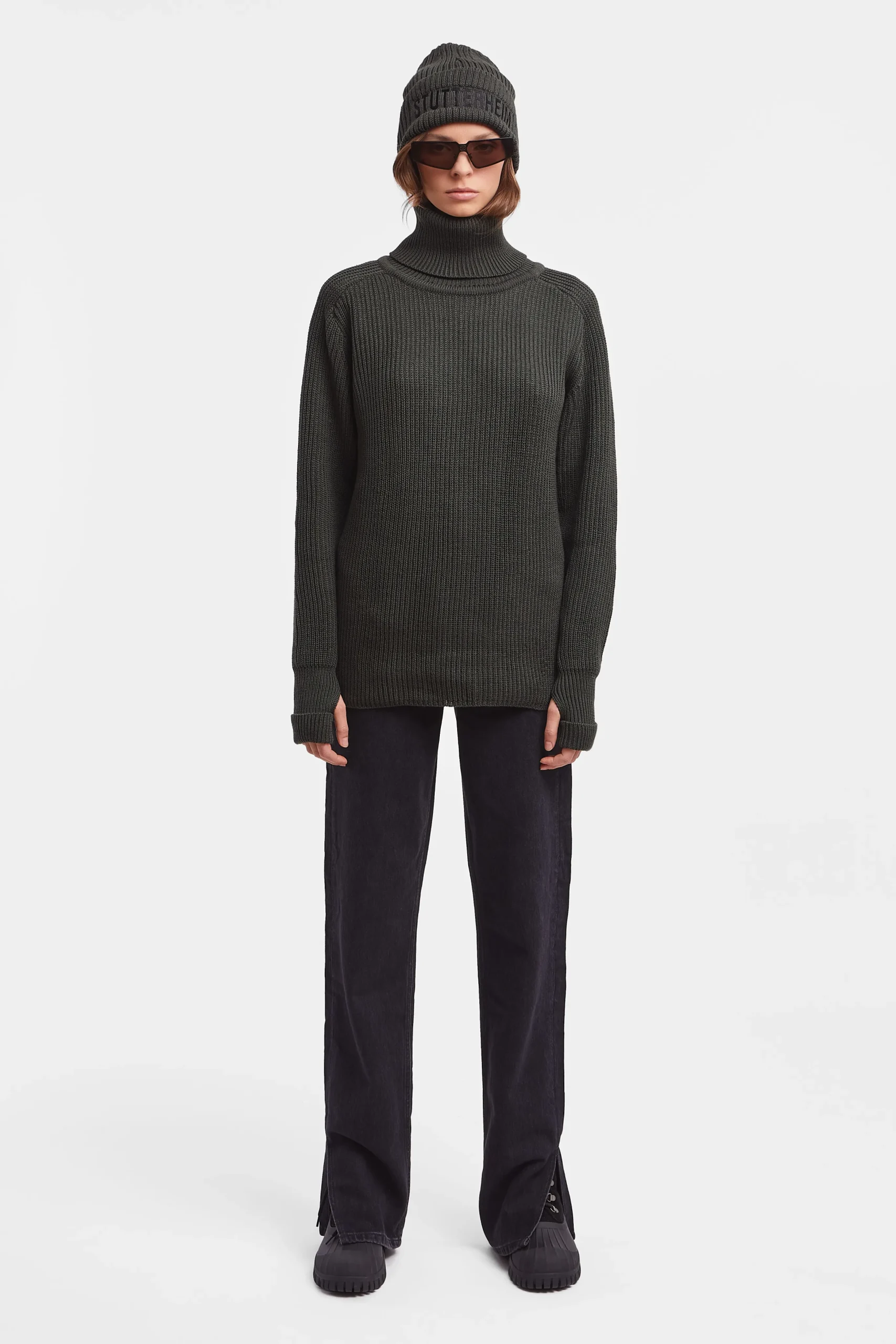 The Original Roller Sweater is a roll-neck rib knitted jumper made from 100% merino wool. A perfect match to our raincoats, this incredibly soft sweater will add an extra layer of warmth when needed. A classic unisex style that is a core wardrobe essential. With design details such as an extendable cuff with thumb grip and an embroidered STUTTERHEIM logo on the back.