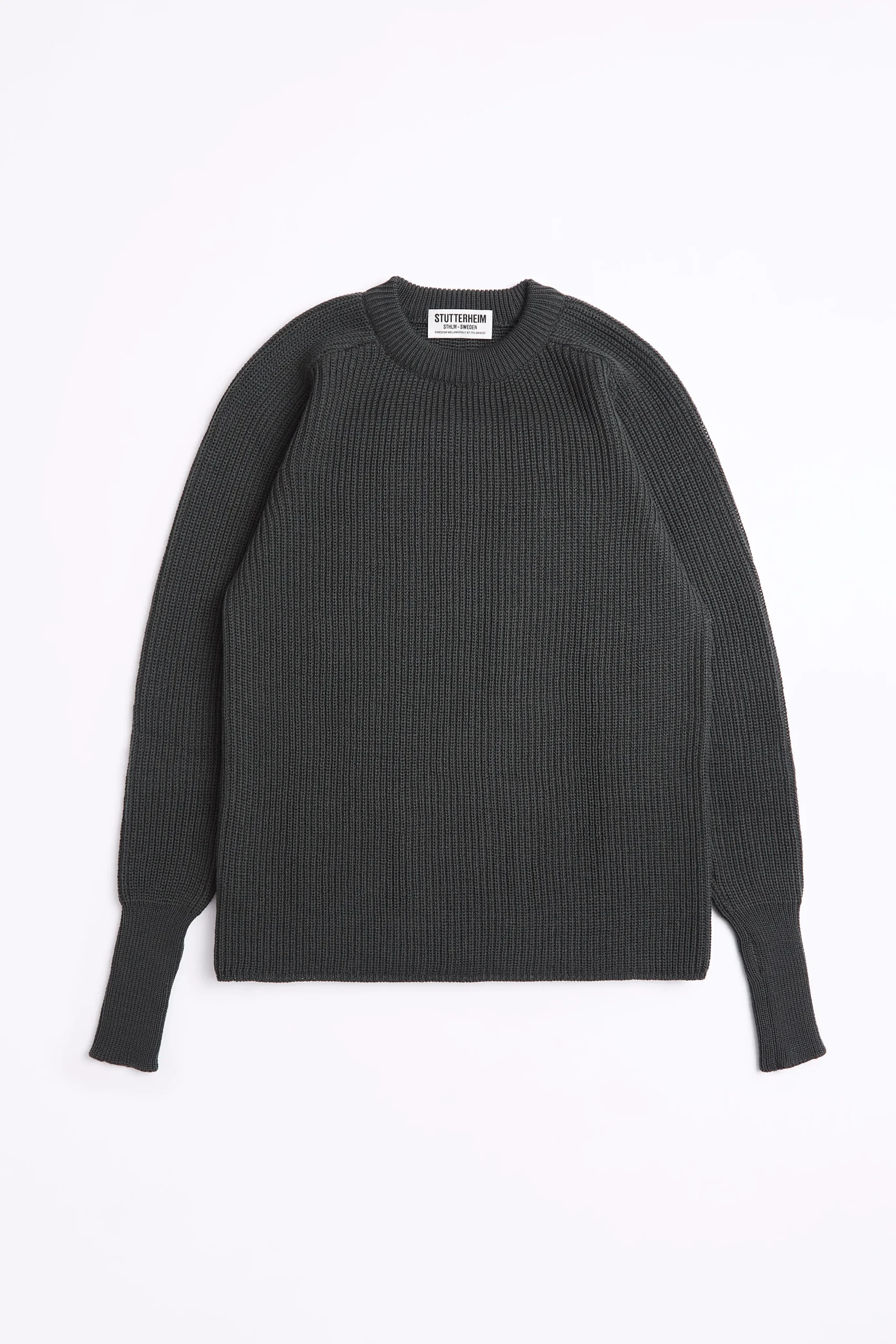The Original Sweater is a crew-neck rib knitted jumper made from 100% merino wool. A perfect match to our raincoats, this incredibly soft sweater will add an extra layer of warmth when needed. A classic unisex style that is a core wardrobe essential. With design details such as an extendable cuff with thumb grip and an embroidered STUTTERHEIM logo on the back.