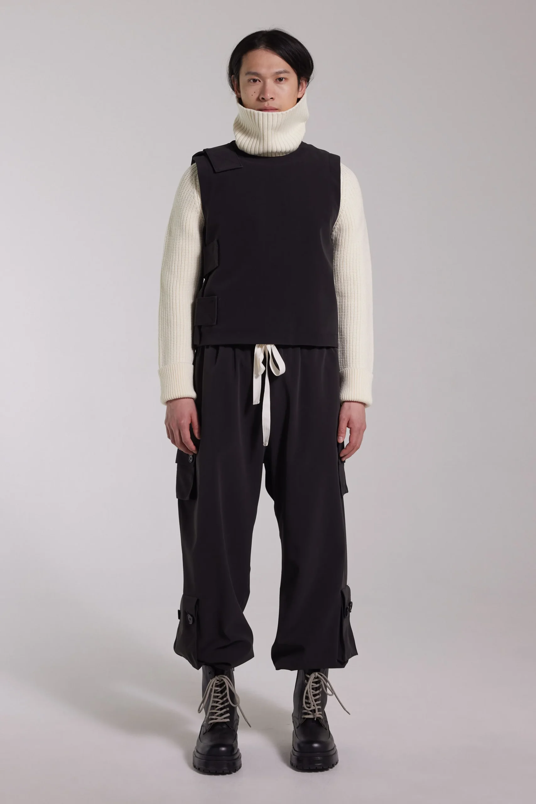 Peace Vest is a military-style vest for men. Made in sturdy and hard-wearing waterproof fabric with a thin layer of padding, this garment is crafted to withstand the elements. Two velcro straps at the side and one at the shoulder make it easy to transition in and out of and it’s a perfect piece for layering.*This garment is intended for casual wear only and does not include any of the practical features that can be found in tactical vests.