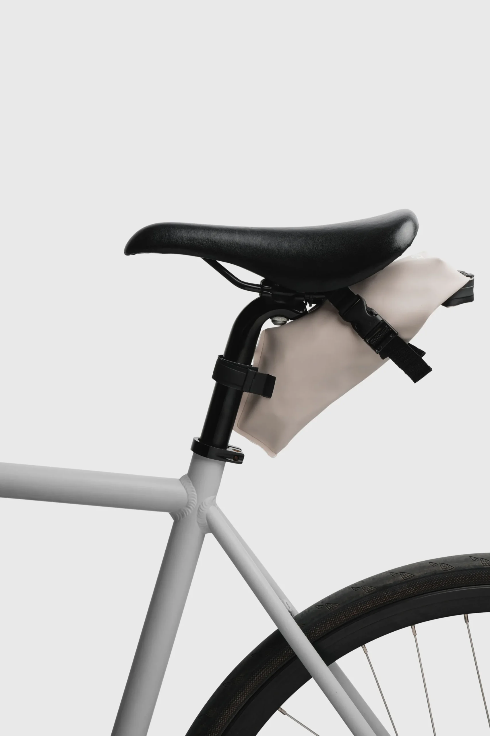 A compact, 100% rainproof bicycle bag that sits under your seat to keep your everyday essentials safe and dry. Crafted from rest fabric from our raincoat production, it is lightweight and easy to attach, fitting almost any bike, with a roll closure top for easy access. Sealed together with double welded seams, just like our Stutterheim raincoats, this bag can handle all weather conditions.