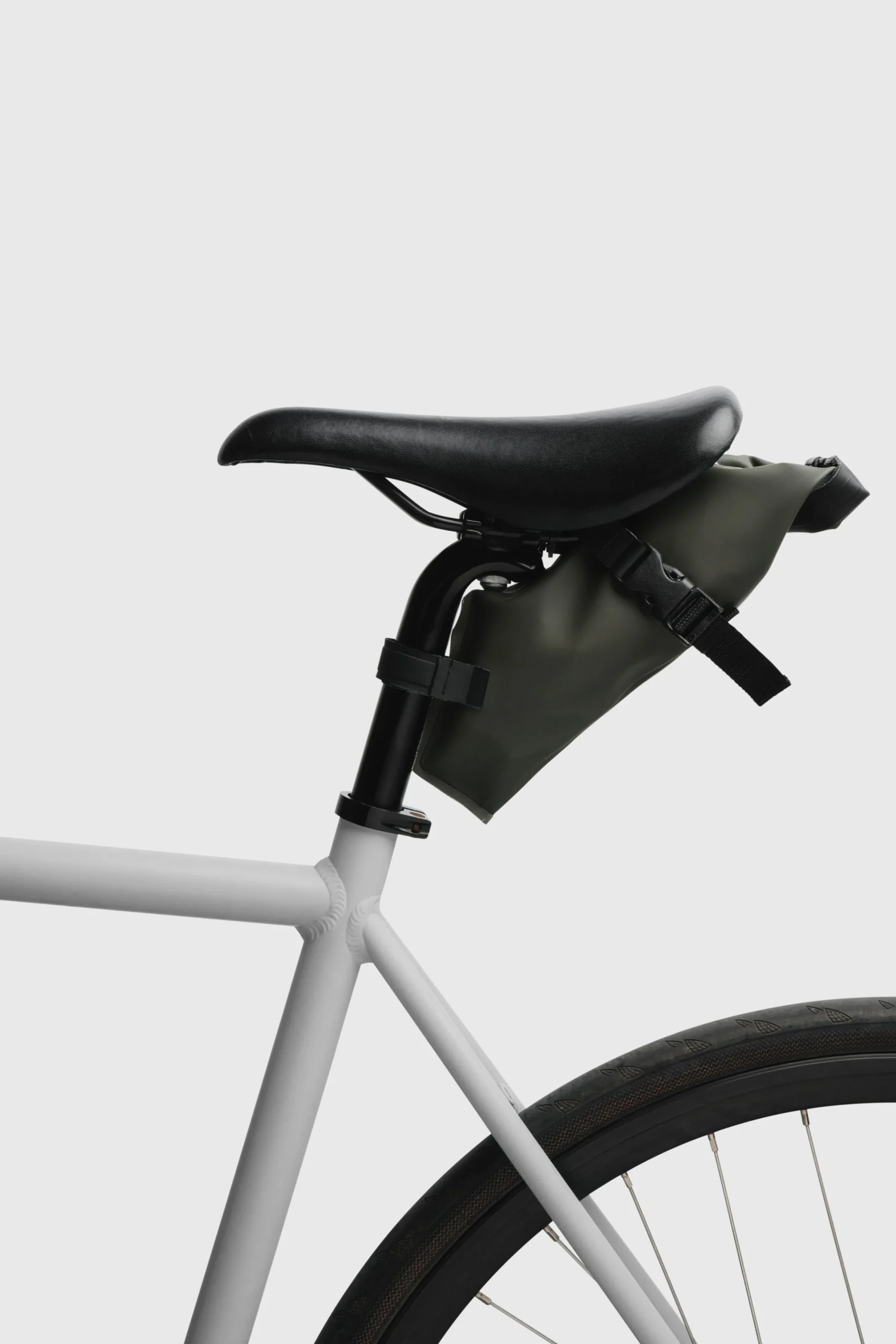 A compact, 100% rainproof bicycle bag that sits under your seat to keep your everyday essentials safe and dry. Crafted from rest fabric from our raincoat production, it is lightweight and easy to attach, fitting almost any bike, with a roll closure top for easy access. Sealed together with double welded seams, just like our Stutterheim raincoats, this bag can handle all weather conditions.