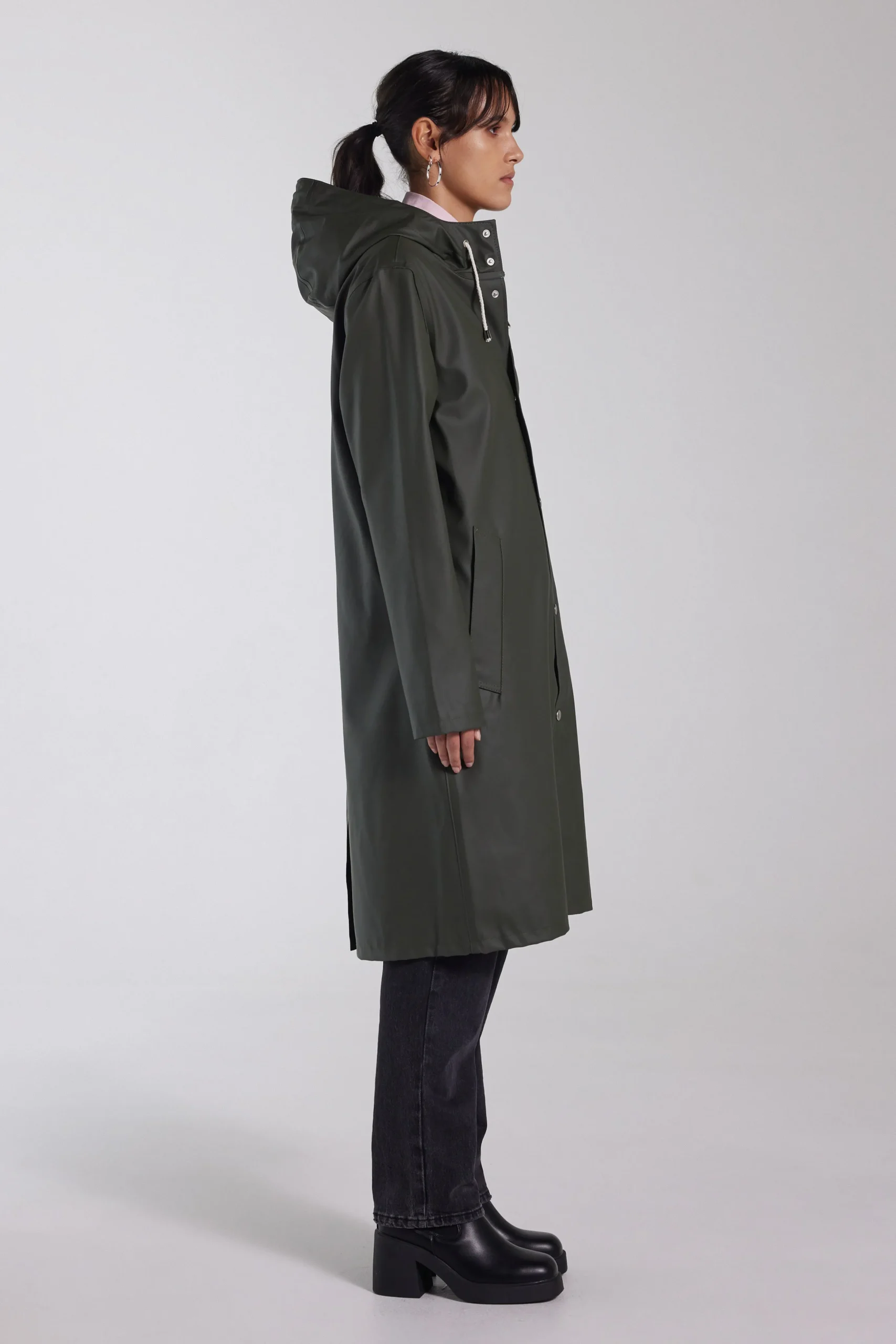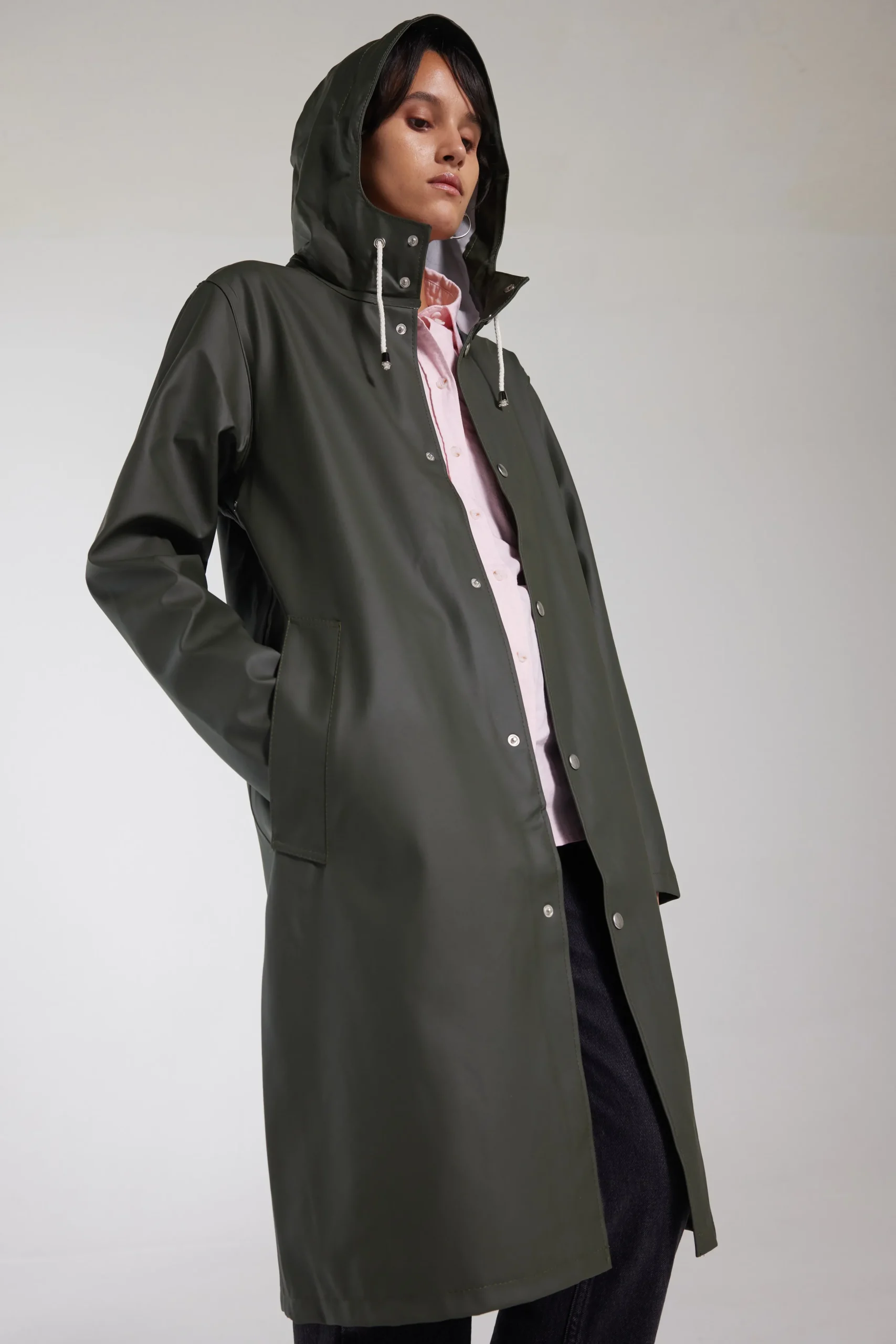 Stockholm Long is a straight-fit knee-length raincoat in sturdy and hard-wearing waterproof fabric. Expertly made, it’s tailored with double-welded seams for complete protection against the rain. The drawstring hood and under-arm eyelets add ease of movement and comfort in uncomfortable weather.
