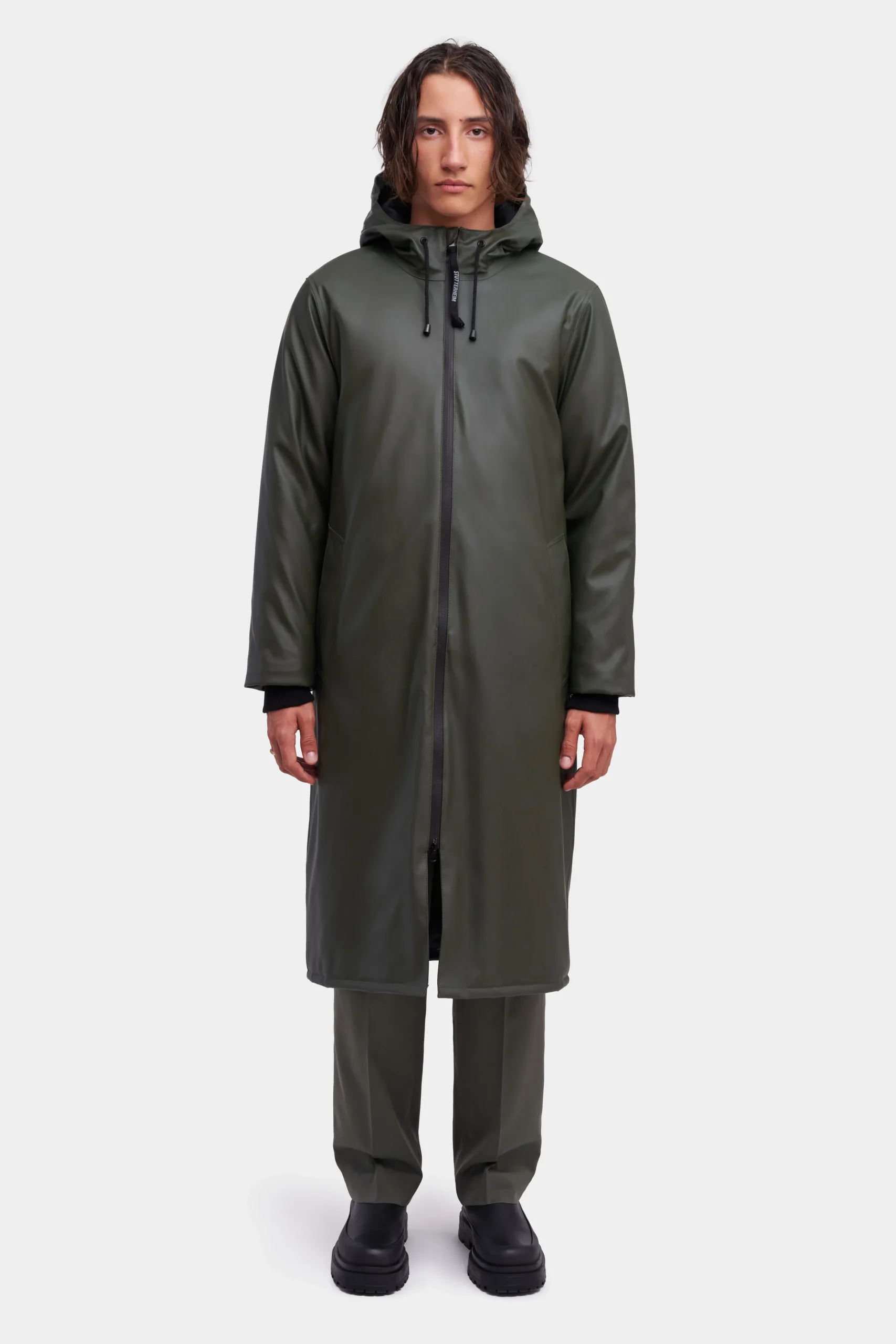 Stockholm Long Winter is a straight-fit knee-length warm raincoat in sturdy and hard-wearing waterproof fabric. It’s insulated with padding for warmth during the winter season. Expertly made, it’s tailored with double-welded seams for complete protection against rain and snow. The drawstring hood and knitted wristlets add ease of movement and comfort in uncomfortable weather.