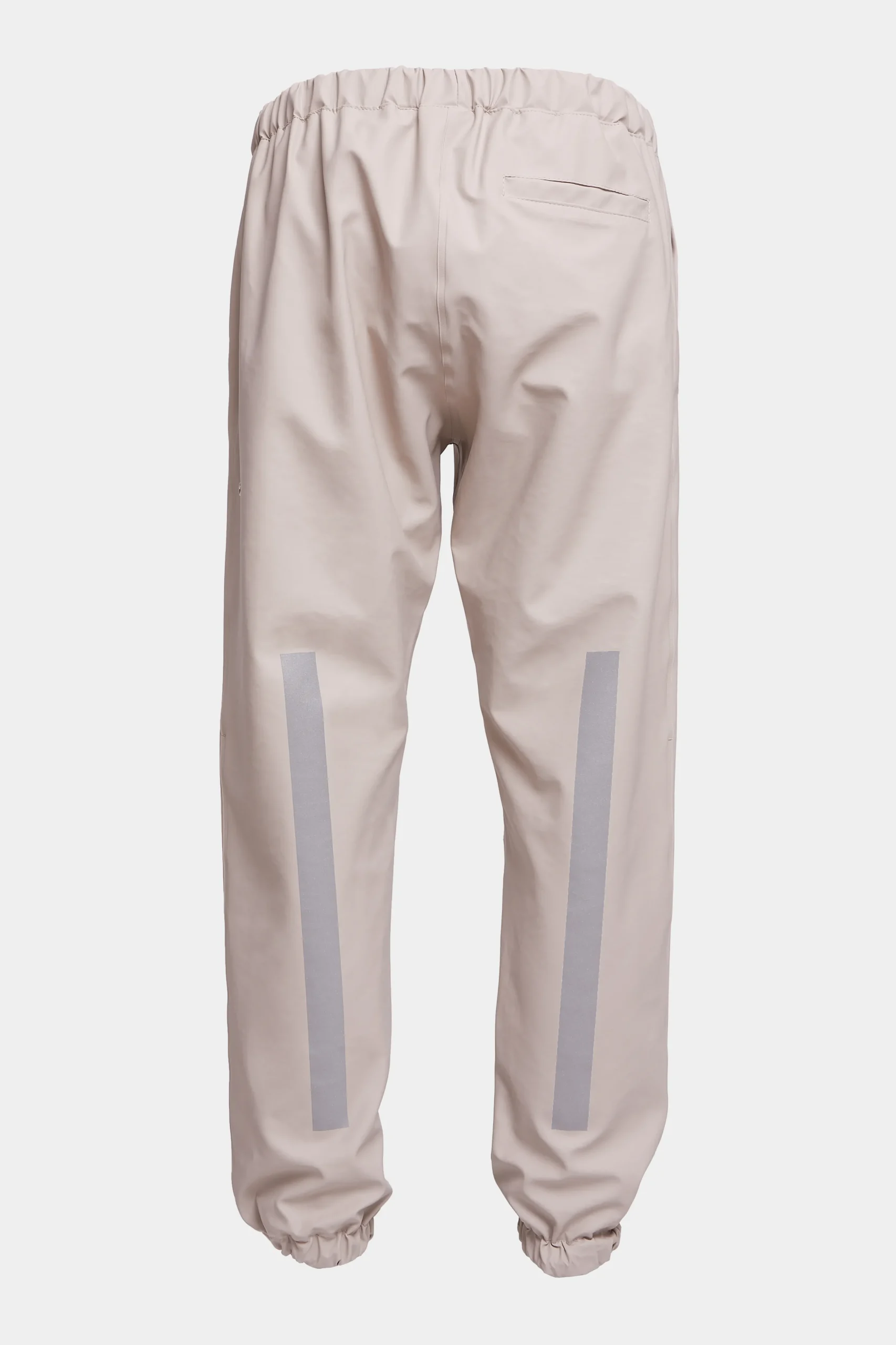Vanadis are coverall trousers for men in light and airy waterproof fabric. Constructed with double-welded seams for complete rain protection, these trousers are perfect for cycling or other outdoor activities when the weather is wet. The elastic drawstring waist and bottom hems complete the relaxed fit and make the garment quick and easy to transition in and out of while providing ease of movement. Reflective stripes and eyelet punctures on each leg add visibility and breathability.
