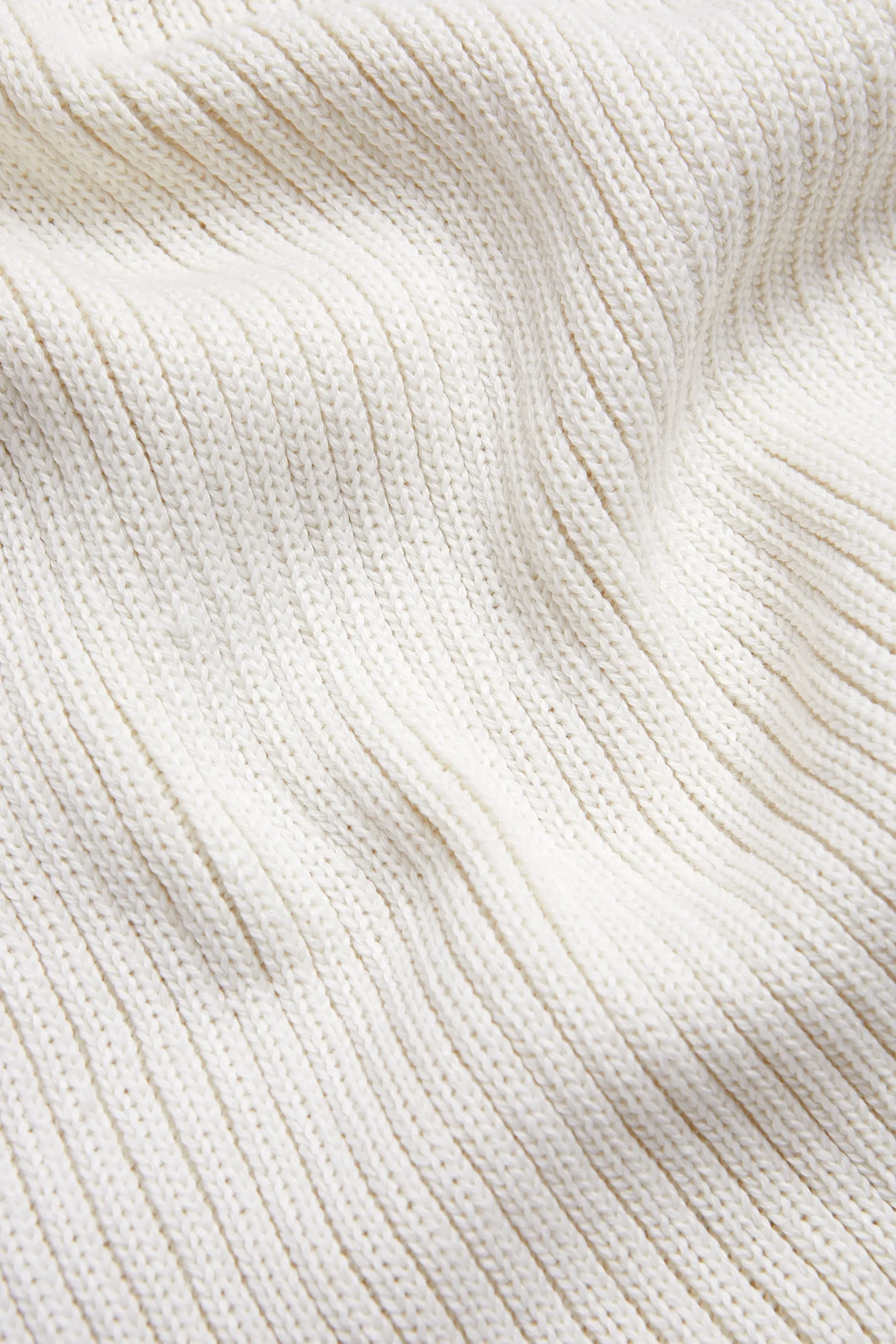 Knitwear is best stored folded, as the fabric can start to sag when hung for an extended amount of time. For long-term storage, enclose in a plastic container with cedar balls to avoid moths.